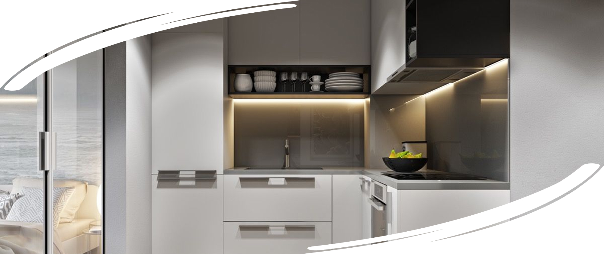 - Инженерные решения: скрытый карниз со светодиодной лентой, встраиваемые розетки в столешнице, монолитные мойки без стыков.