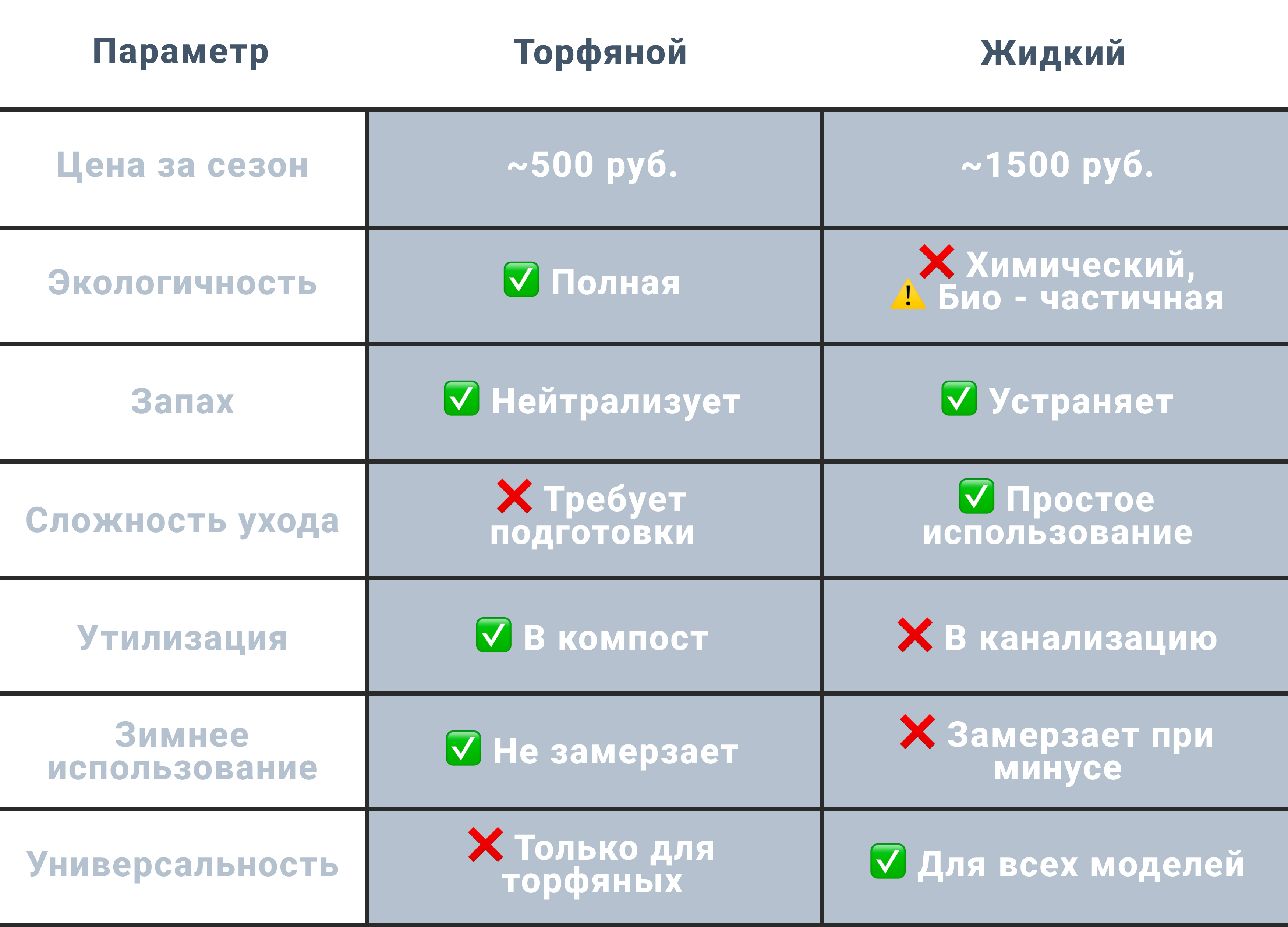 Выбрать наполнитель для биотуалета бывает сложнее, чем кажется! Оба варианта хороши, но подходят для разных ситуаций. Мы сравнили их по всем параметрам, чтобы вы могли сделать осознанный выбор.