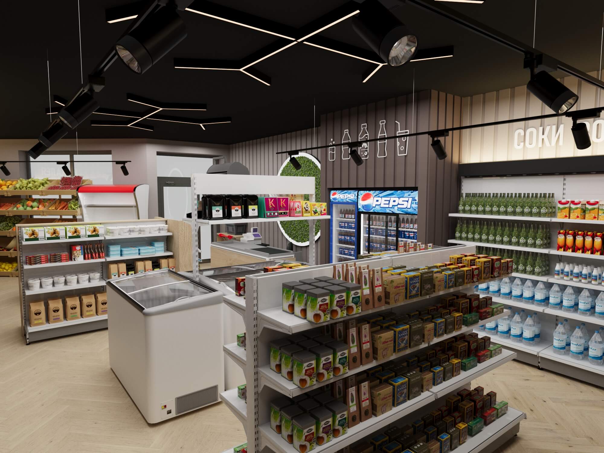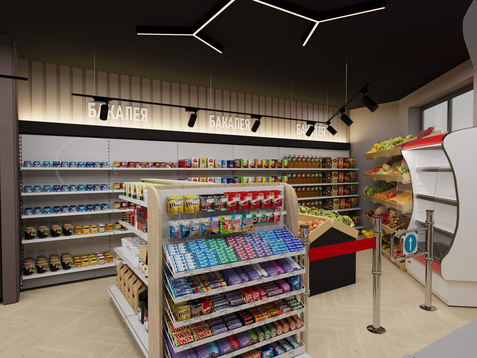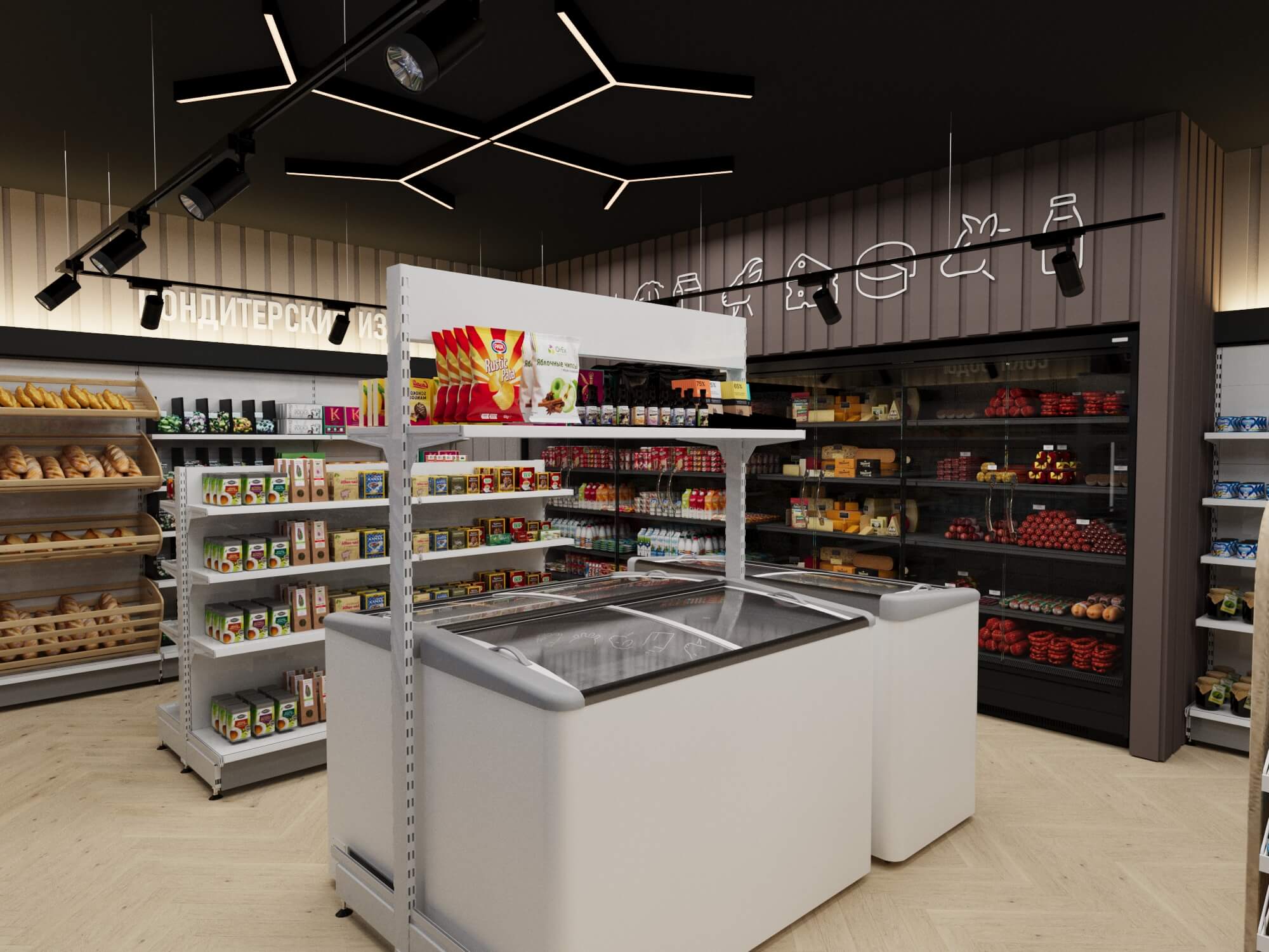 Современный продуктовый магазин представляет собой образец продуманного торгового пространства, где функциональность сочетается с эстетикой.