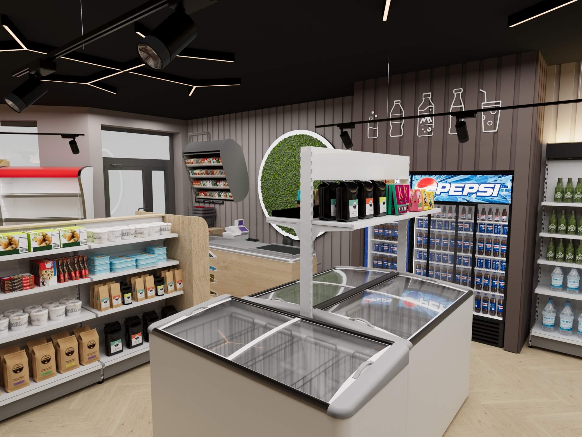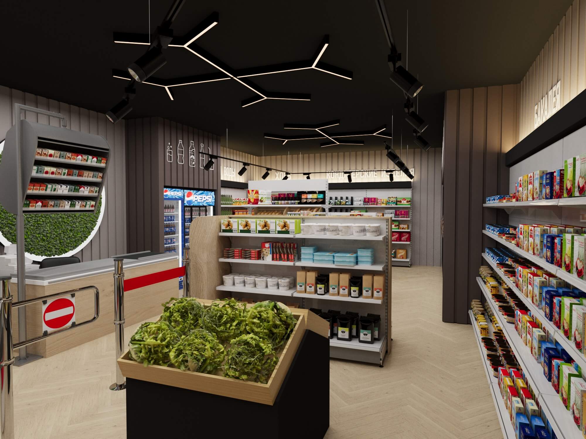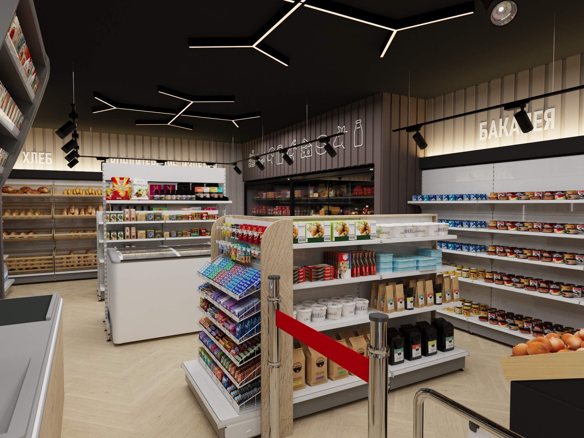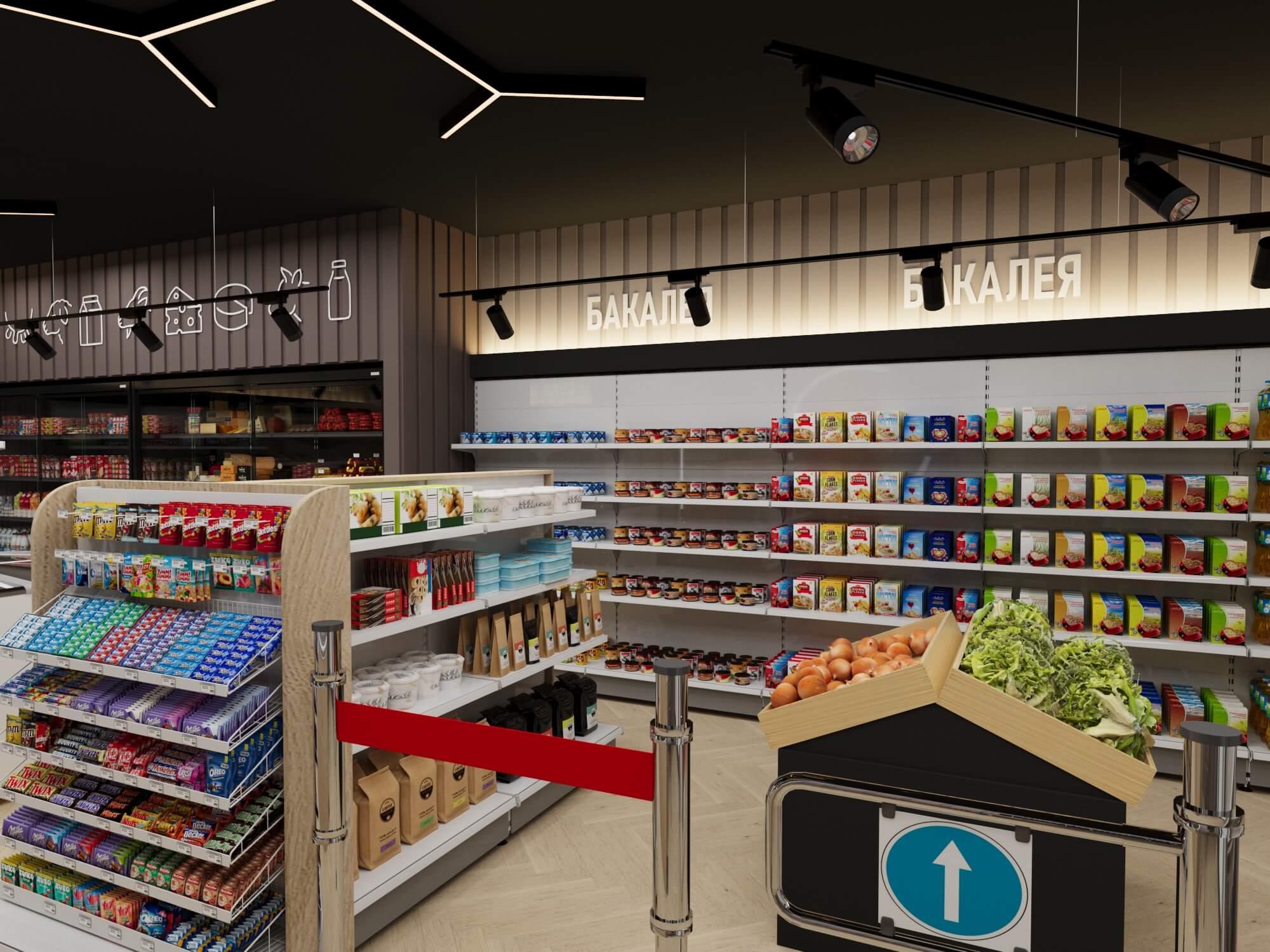 Современный продуктовый магазин представляет собой образец продуманного торгового пространства, где функциональность сочетается с эстетикой.