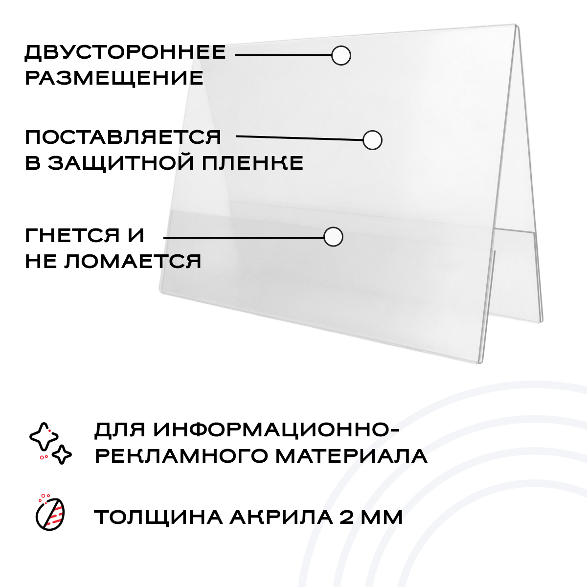 Менюхолдер двухсторонний для презентаций, (шалаш) 210*150мм, акрил можно приобрести в интернет-магазине Lokos с доставкой или самовывозом по Челябинской области или доставкой до ТК с дальнейшей отправкой во все регионы Российской Федерации и СНГ.