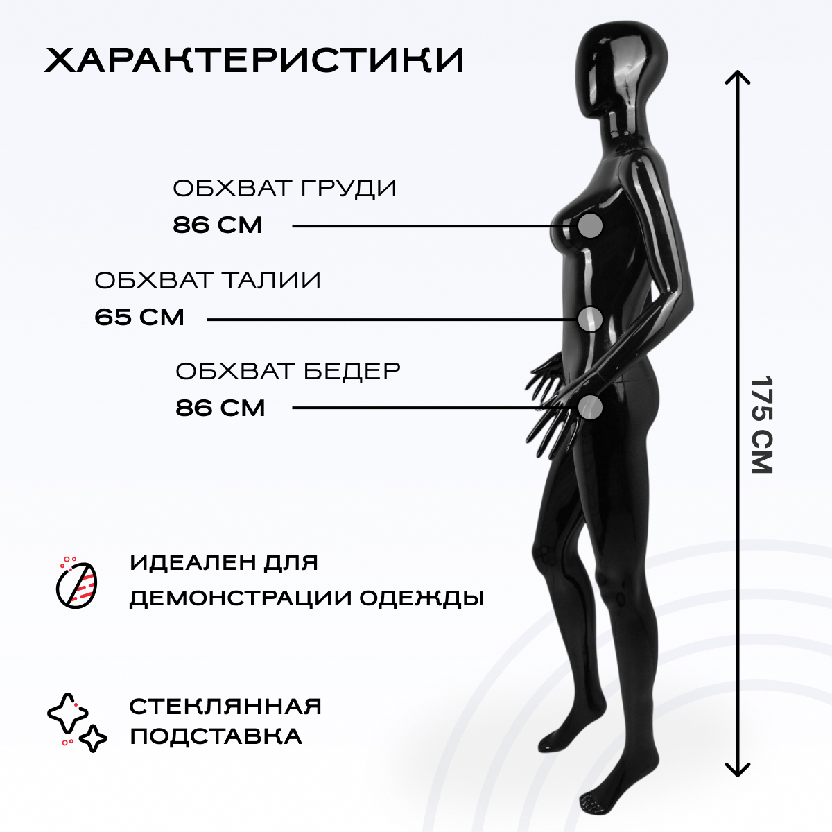 Манекен женский 175см, 86-65-86см, черный, руки вниз можно приобрести в интернет-магазине Lokos с доставкой или самовывозом по Челябинской области или доставкой до ТК с дальнейшей отправкой во все регионы Российской Федерации и СНГ.