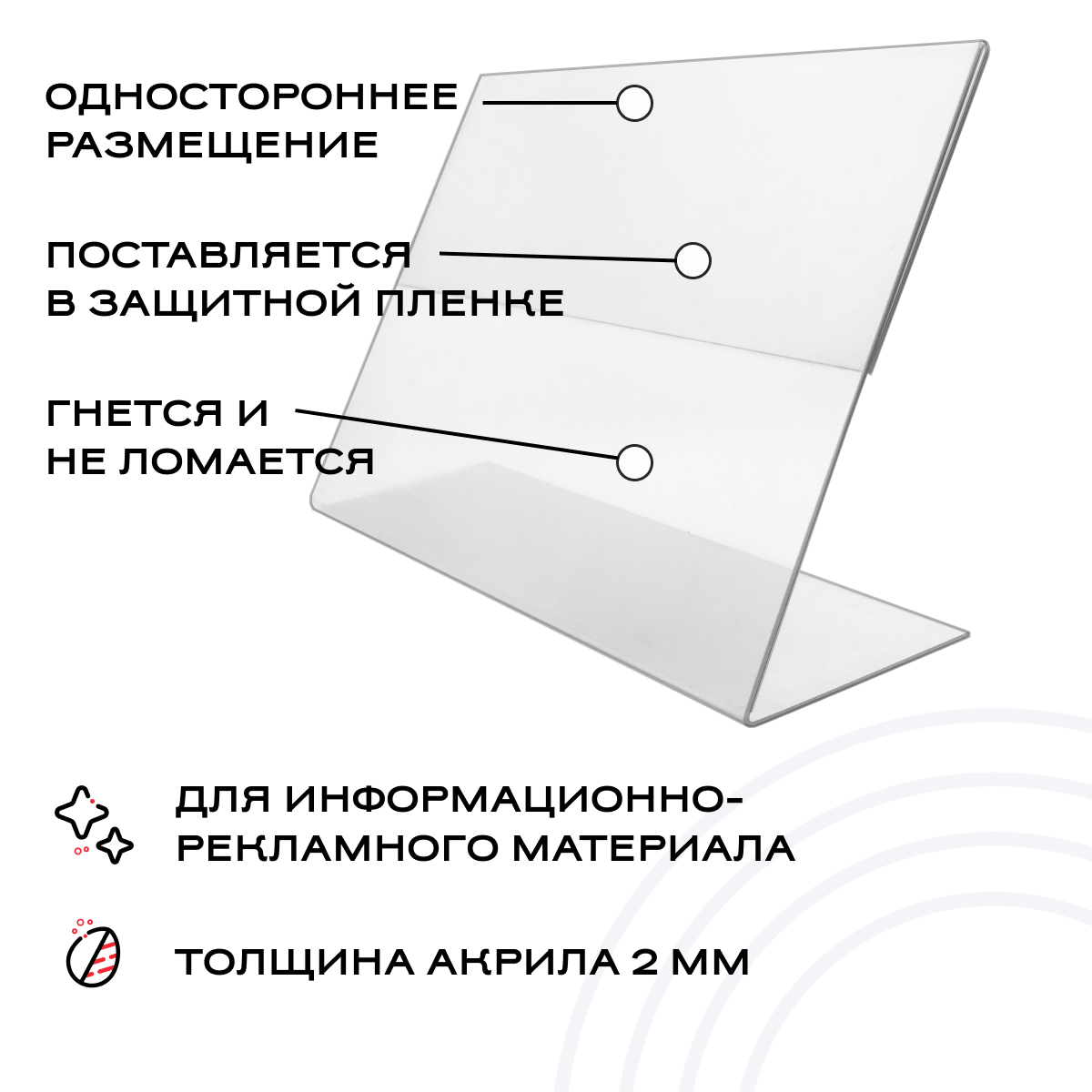 Тейбл тент горизонтальный наклонный А4 297*210 мм, прозрачный акрил можно приобрести в интернет-магазине Lokos с доставкой или самовывозом по Челябинской области или доставкой до ТК с дальнейшей отправкой во все регионы Российской Федерации и СНГ.