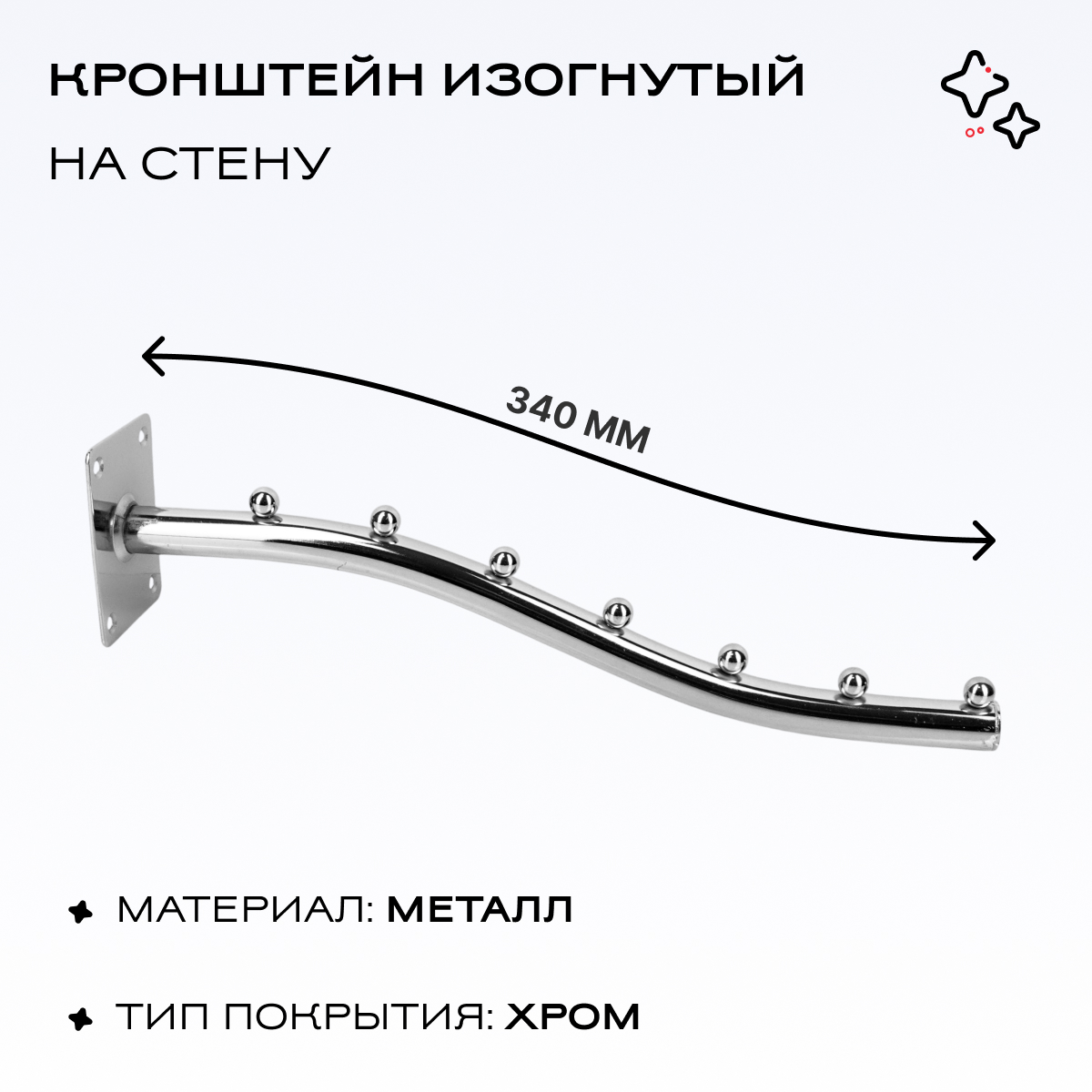 Кронштейн на стену изогнутый 7 шариков d=19мм, хром, 340мм можно приобрести в интернет-магазине Lokos с доставкой или самовывозом по Челябинской области или доставкой до ТК с дальнейшей отправкой во все регионы Российской Федерации и СНГ.