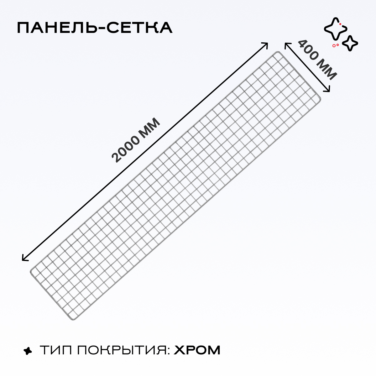 Панель-сетка 2000*400мм, хром можно приобрести в интернет-магазине Lokos с доставкой или самовывозом по Челябинской области или доставкой до ТК с дальнейшей отправкой во все регионы Российской Федерации и СНГ.