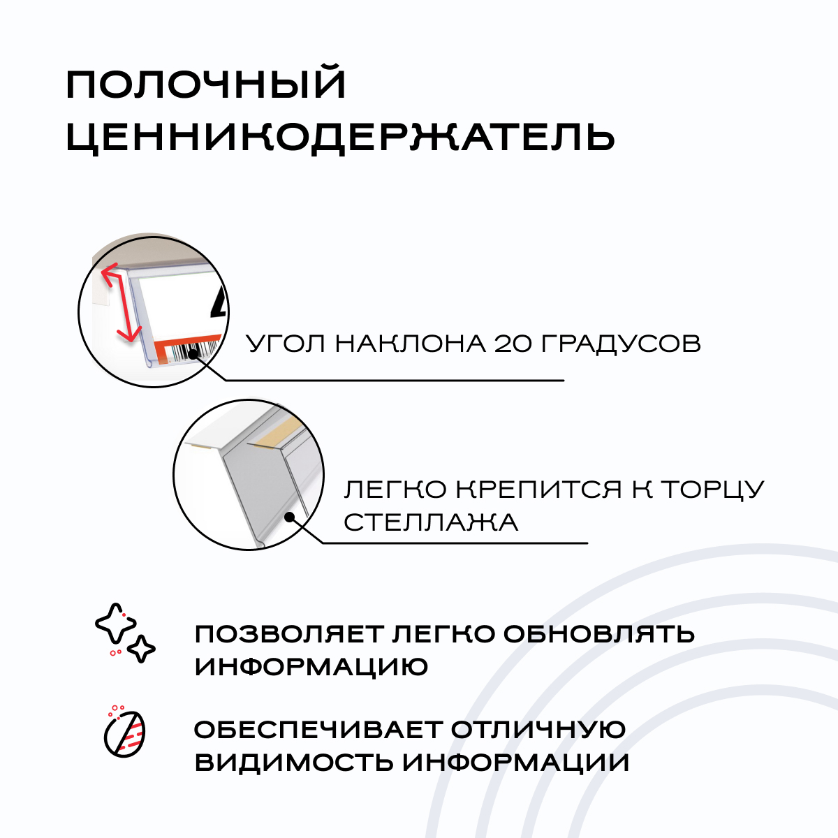 Ценникодержатель полочный самоклеющийся HEL39 длина 1000мм, цвет белый можно приобрести в интернет-магазине Lokos с доставкой или самовывозом по Челябинской области или доставкой до ТК с дальнейшей отправкой во все регионы Российской Федерации и СНГ.