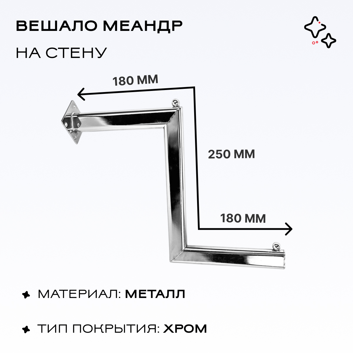 Вешало на стену меандр 320 мм, хром можно приобрести в интернет-магазине Lokos с доставкой или самовывозом по Челябинской области или доставкой до ТК с дальнейшей отправкой во все регионы Российской Федерации и СНГ.