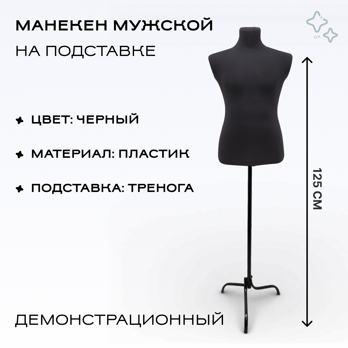 Манекен демонстрационный мужской, черный, подставка тренога можно приобрести в интернет-магазине Lokos с доставкой или самовывозом по Челябинской области или доставкой до ТК с дальнейшей отправкой во все регионы Российской Федерации и СНГ.