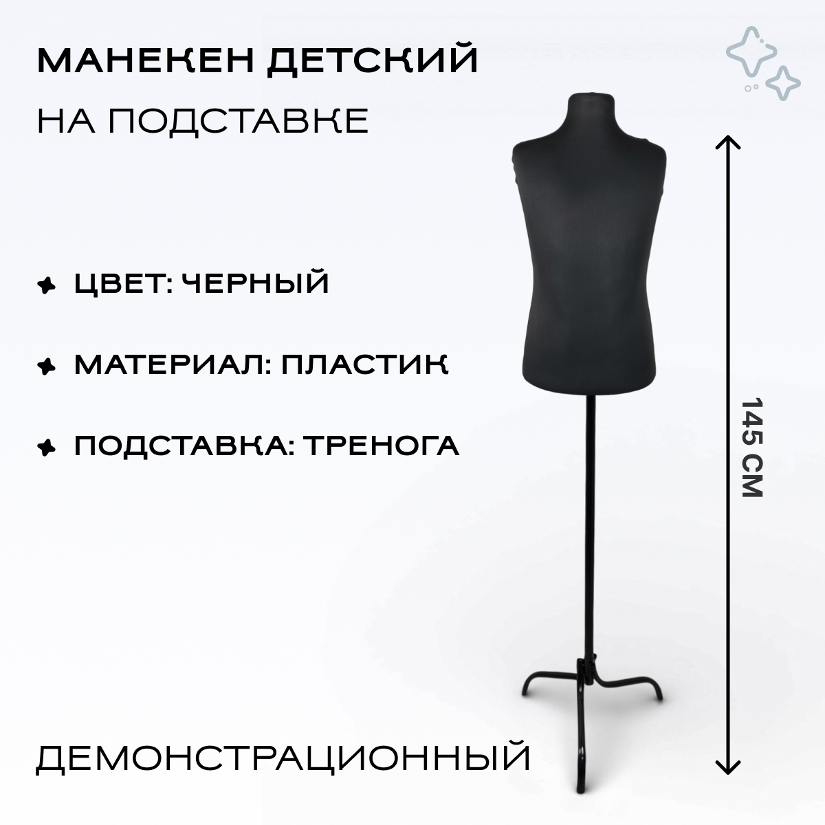 Манекен демонстрационный детский, черный, подставка тренога можно приобрести в интернет-магазине Lokos с доставкой или самовывозом по Челябинской области или доставкой до ТК с дальнейшей отправкой во все регионы Российской Федерации и СНГ.