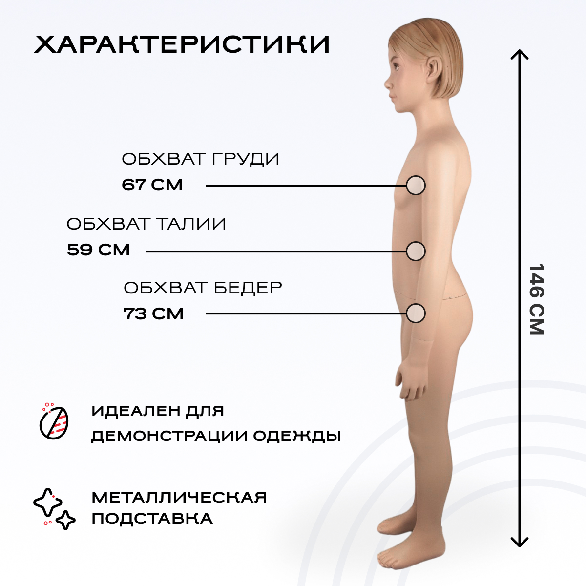 Манекен детский (девочка), 143см, 67-59-73см можно приобрести в интернет-магазине Lokos с доставкой или самовывозом по Челябинской области или доставкой до ТК с дальнейшей отправкой во все регионы Российской Федерации и СНГ.