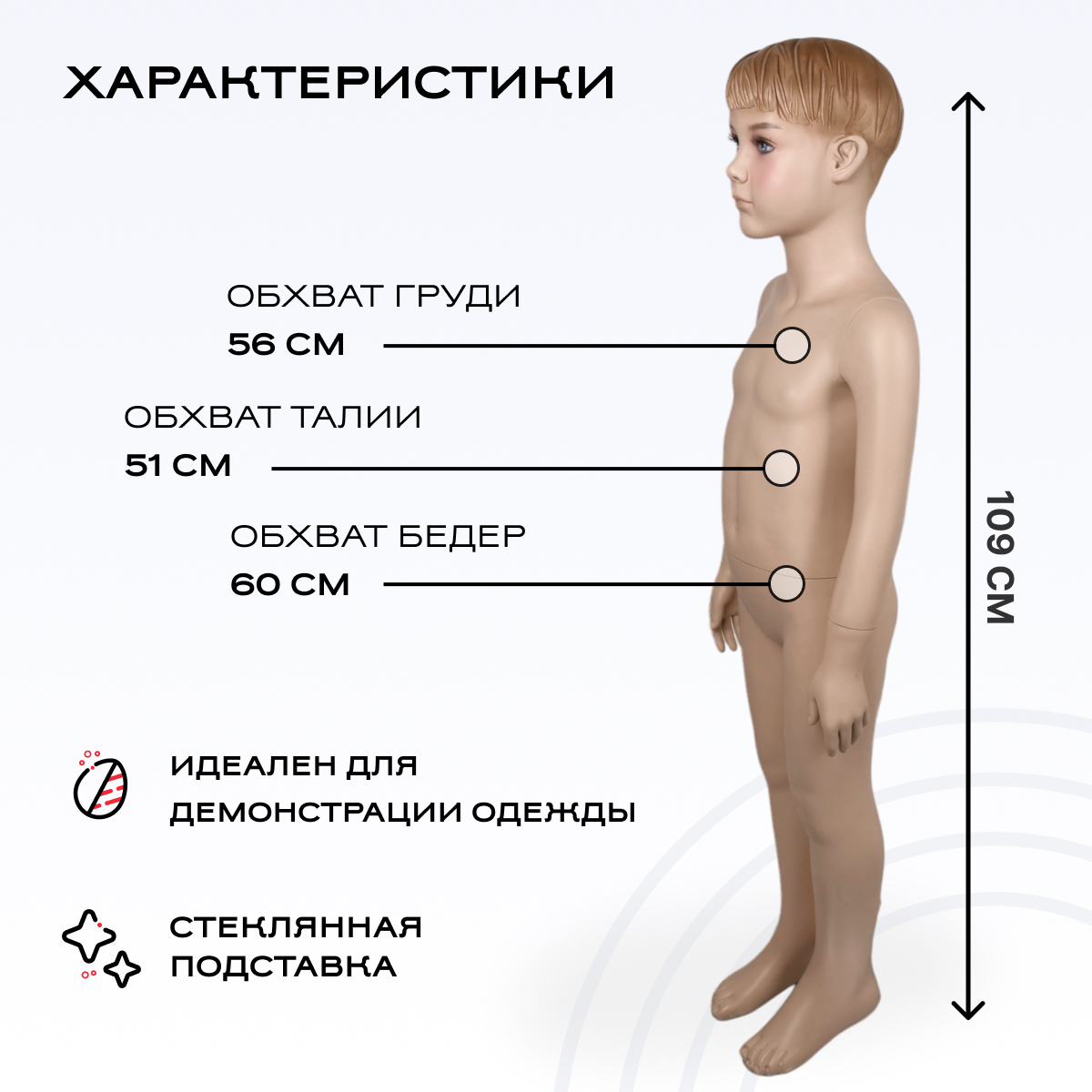 Манекен детский 109, 56-51-60см можно приобрести в интернет-магазине Lokos с доставкой или самовывозом по Челябинской области или доставкой до ТК с дальнейшей отправкой во все регионы Российской Федерации и СНГ.