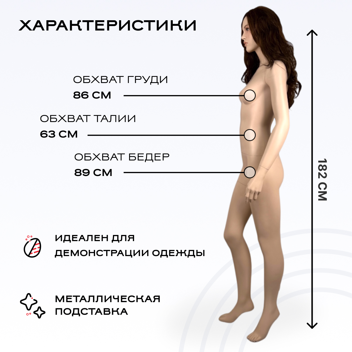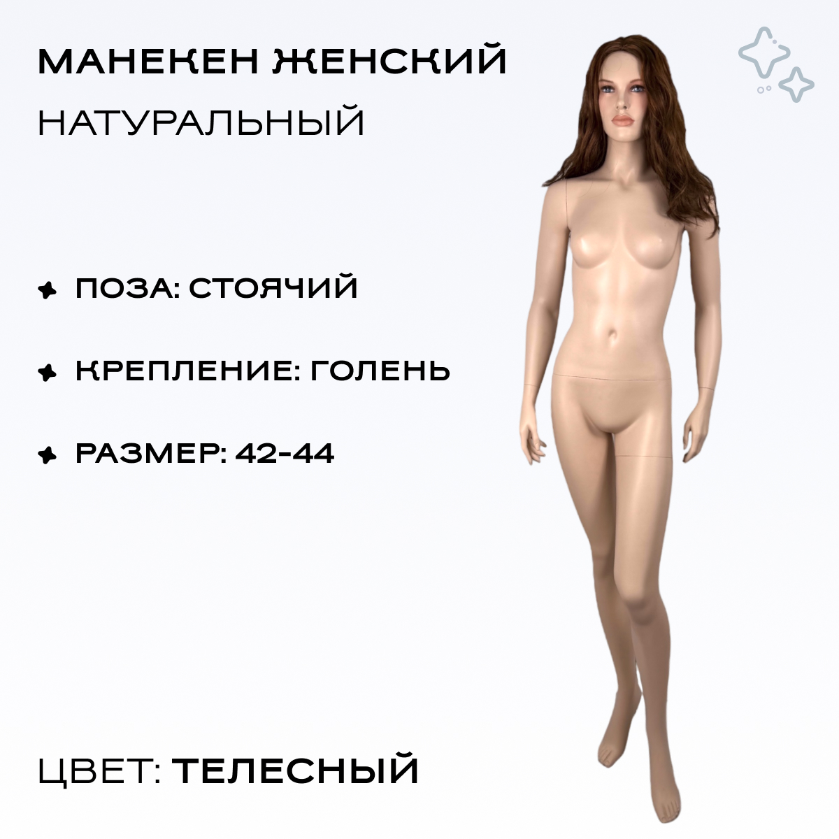 Манекен женский 182см, 86-63-89см,парик, волосы длинные,глаза голубые можно приобрести в интернет-магазине Lokos с доставкой или самовывозом по Челябинской области или доставкой до ТК с дальнейшей отправкой во все регионы Российской Федерации и СНГ.