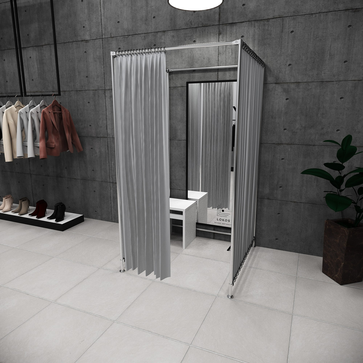 Стоимость указана за каркас для примерочной. Шторы, пуфик и зеркало вы можете приобрести дополнительно на нашем сайте.