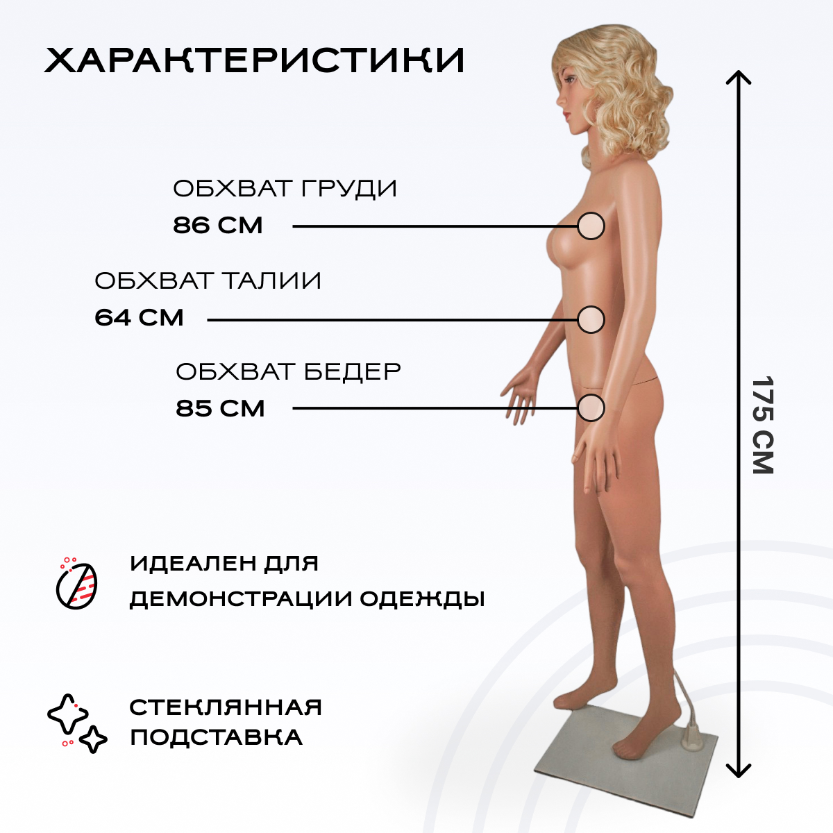 Манекен женский пластиковый 175см, 86-64-85см, парик, волосы длинные, цвет блонд можно приобрести в интернет-магазине Lokos с доставкой или самовывозом по Челябинской области или доставкой до ТК с дальнейшей отправкой во все регионы Российской Федерации и СНГ.