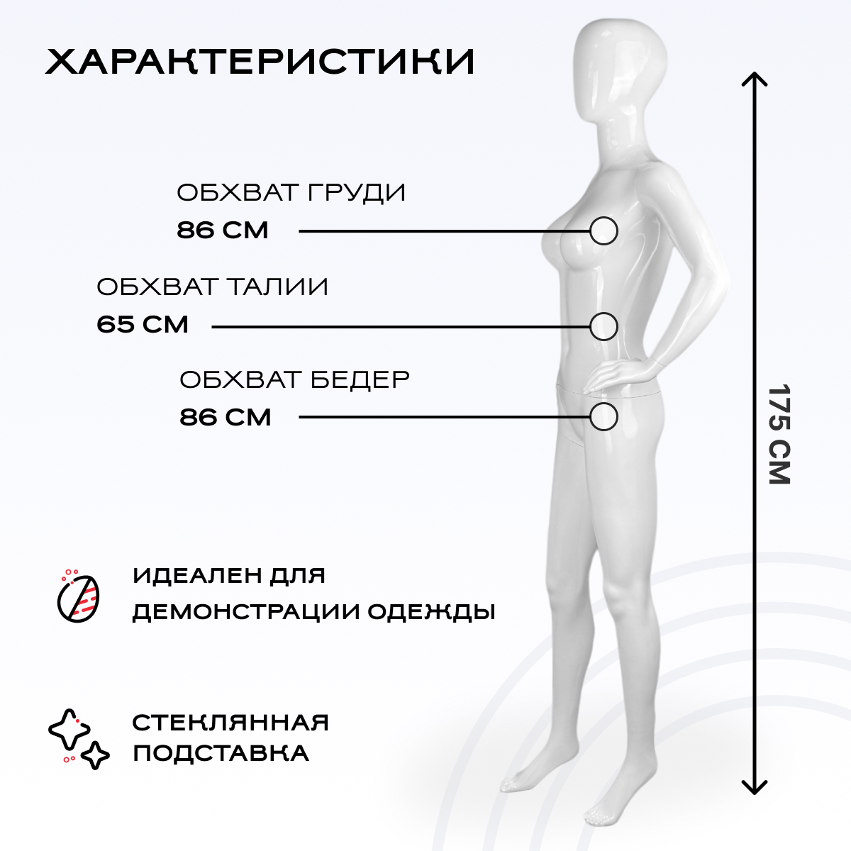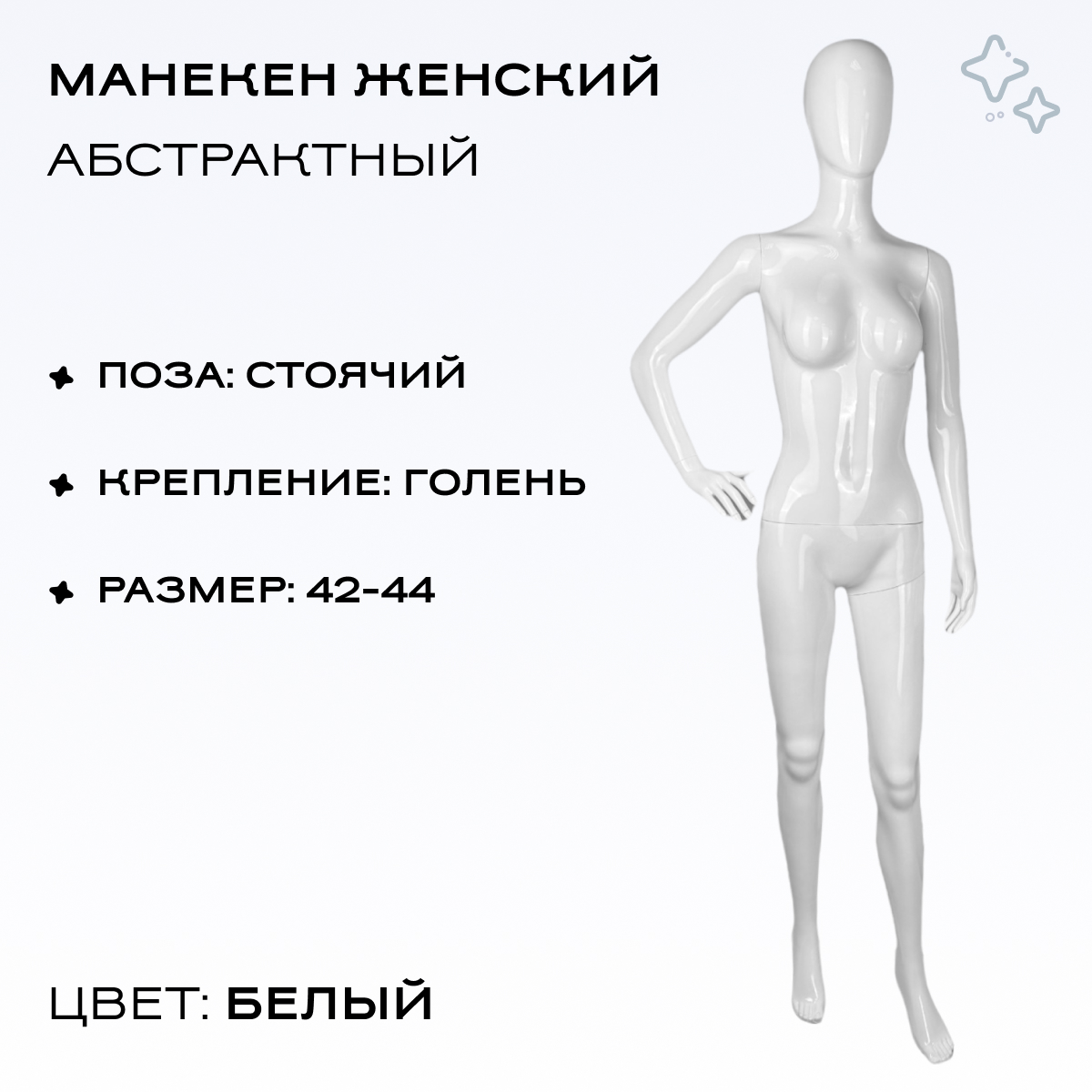 Манекен женский 175см, 86-65-86см, белый, рука к поясу можно приобрести в интернет-магазине Lokos с доставкой или самовывозом по Челябинской области или доставкой до ТК с дальнейшей отправкой во все регионы Российской Федерации и СНГ.