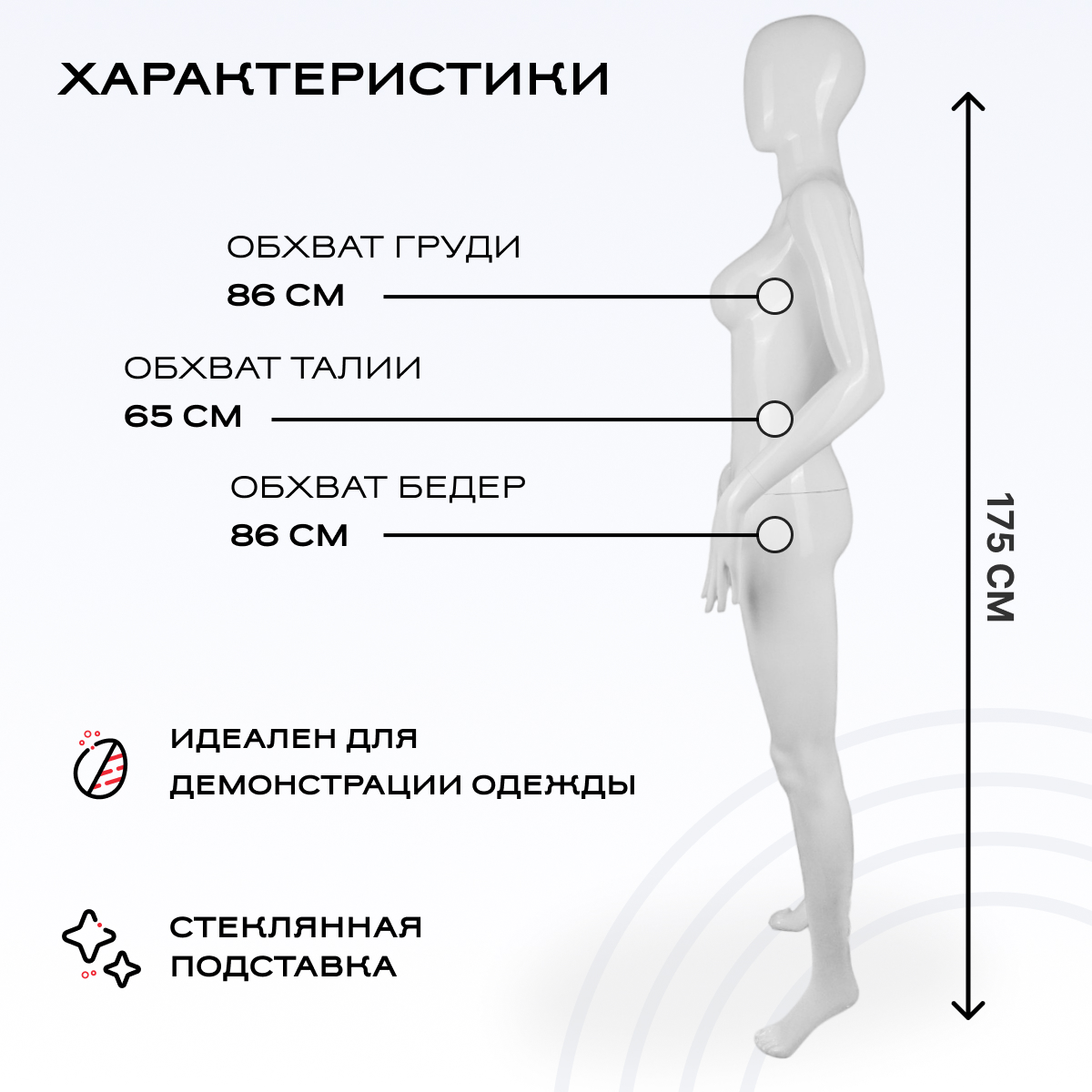 Манекен женский 175см, 86-65-86см, белый, руки вперед можно приобрести в интернет-магазине Lokos с доставкой или самовывозом по Челябинской области или доставкой до ТК с дальнейшей отправкой во все регионы Российской Федерации и СНГ.