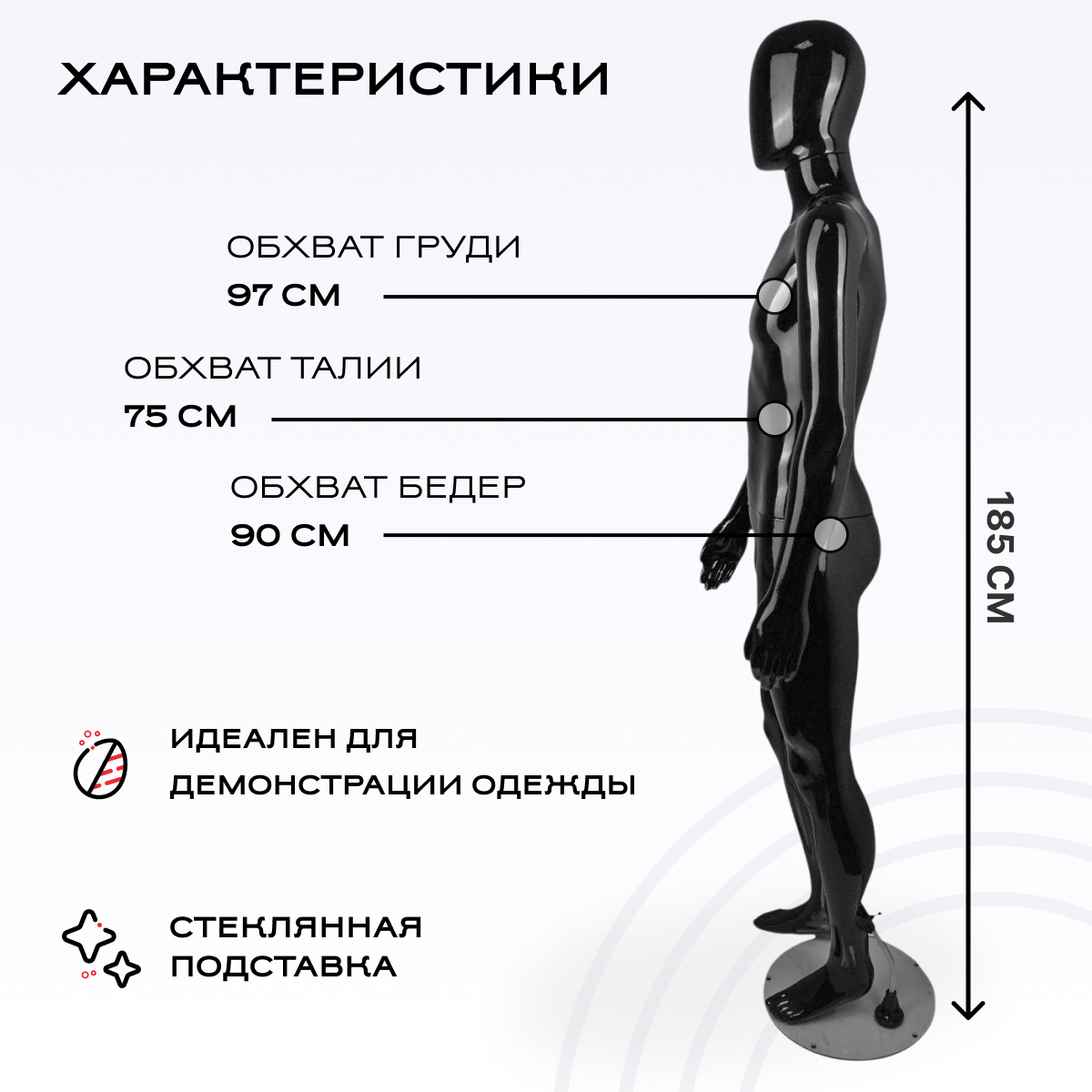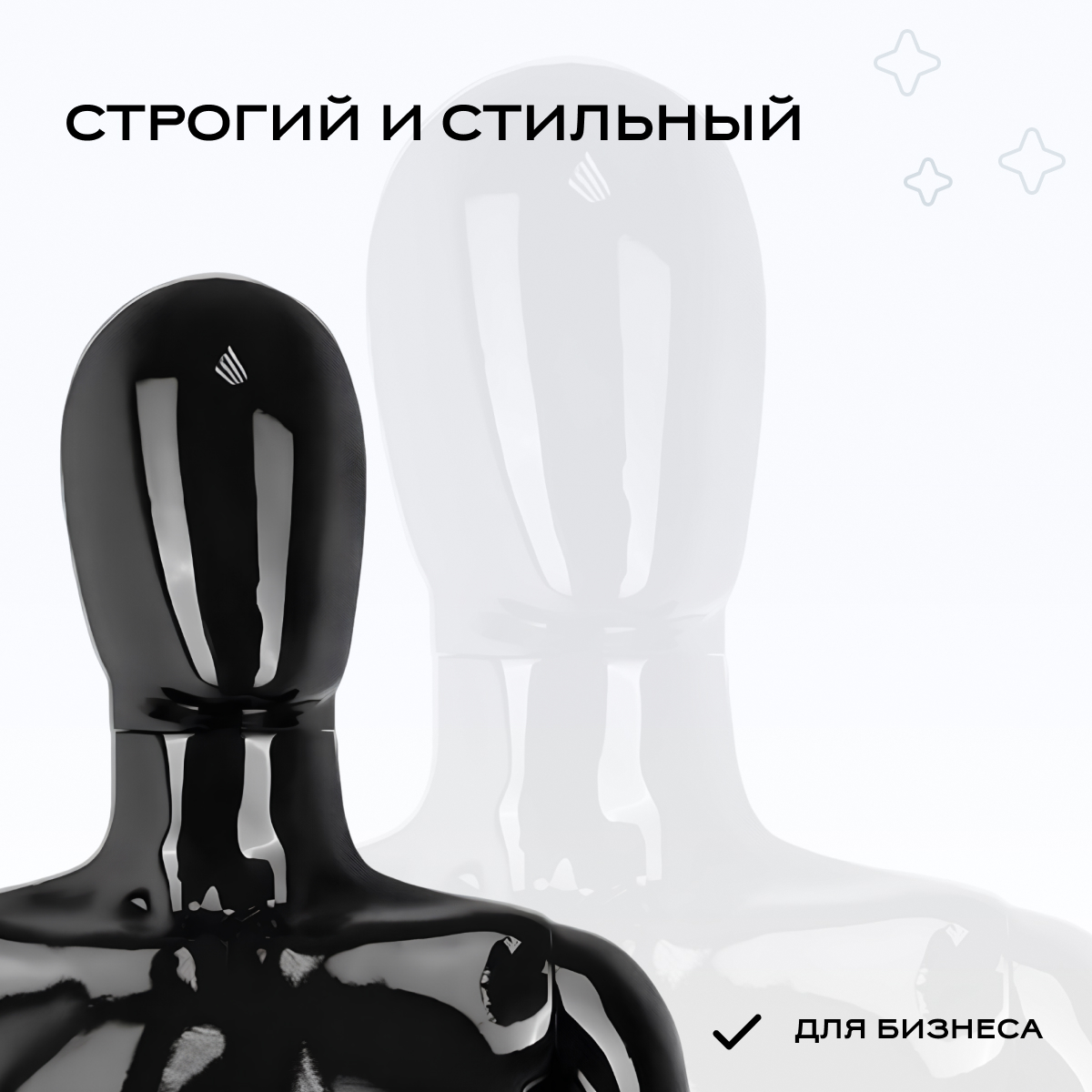 Привлеките внимание покупателей к коллекции мужской одежды! Глянцевая поверхность эффектно отражает свет, делая образ ярче. Его анатомически точные пропорции и стильное черное покрытие подчеркнут статус и качество вашего товара.