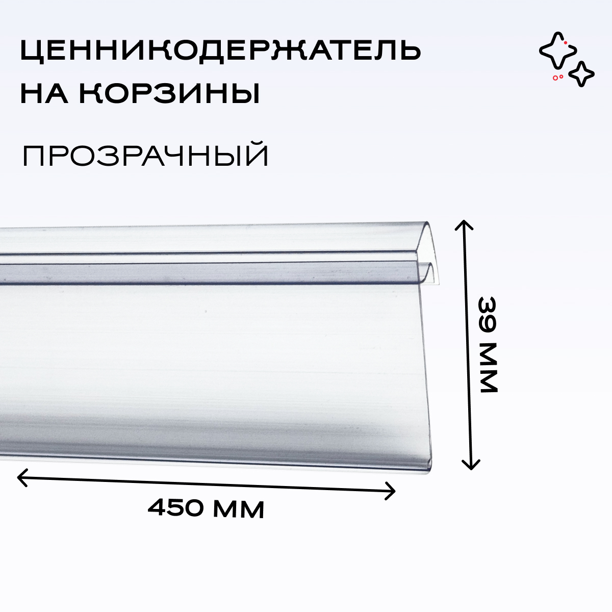 Ценникодержатель на корзины из металлических прутьев KE39 длина 450мм, цвет прозрачный, KE39-450 пр можно приобрести в интернет-магазине Lokos с доставкой или самовывозом по Челябинской области или доставкой до ТК с дальнейшей отправкой во все регионы Российской Федерации и СНГ.