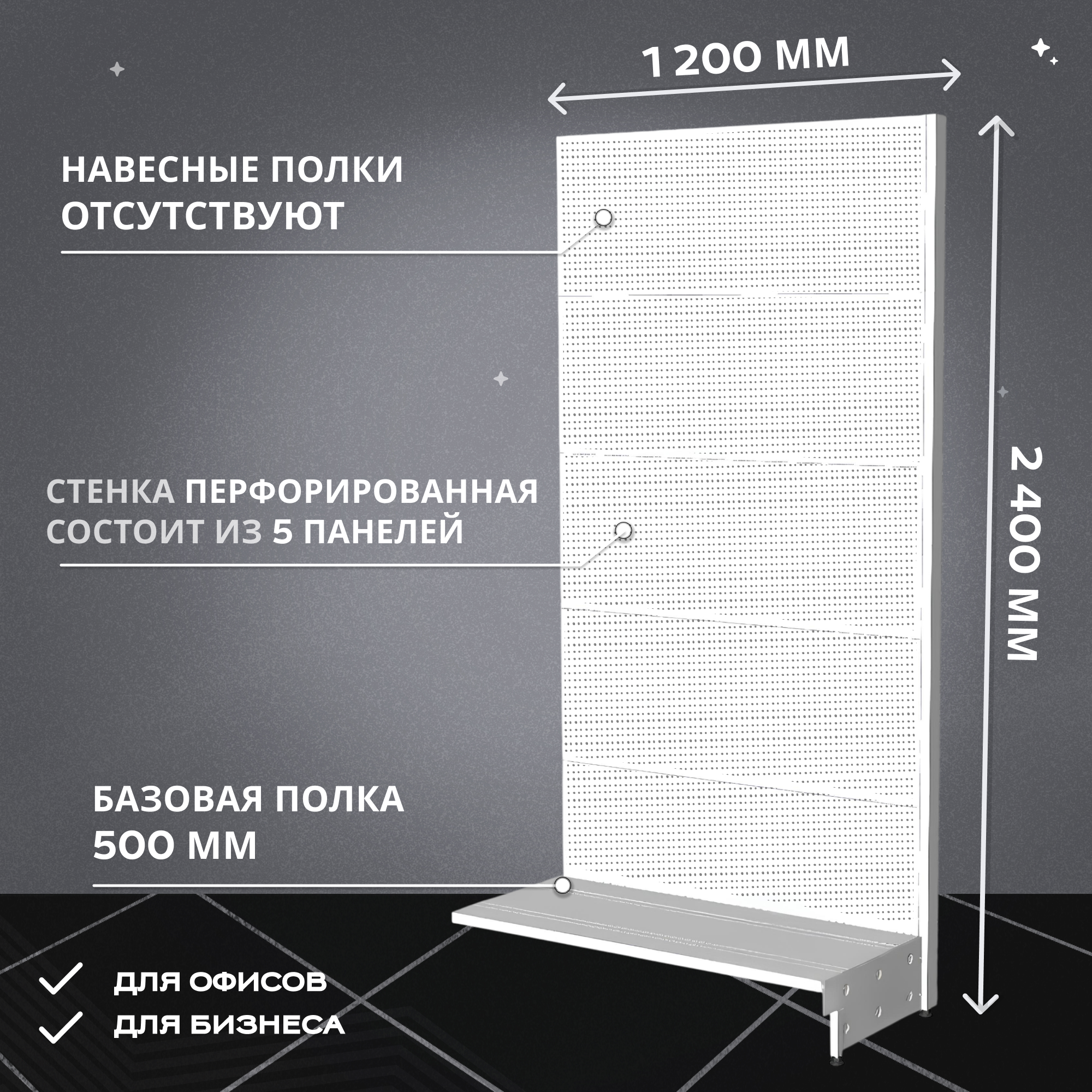 Стеллаж торговый пристенный 2400х1200 мм перфорированный дополнительный можно приобрести в интернет-магазине Lokos с доставкой или самовывозом по Челябинской области или доставкой до ТК с дальнейшей отправкой во все регионы Российской Федерации и СНГ.