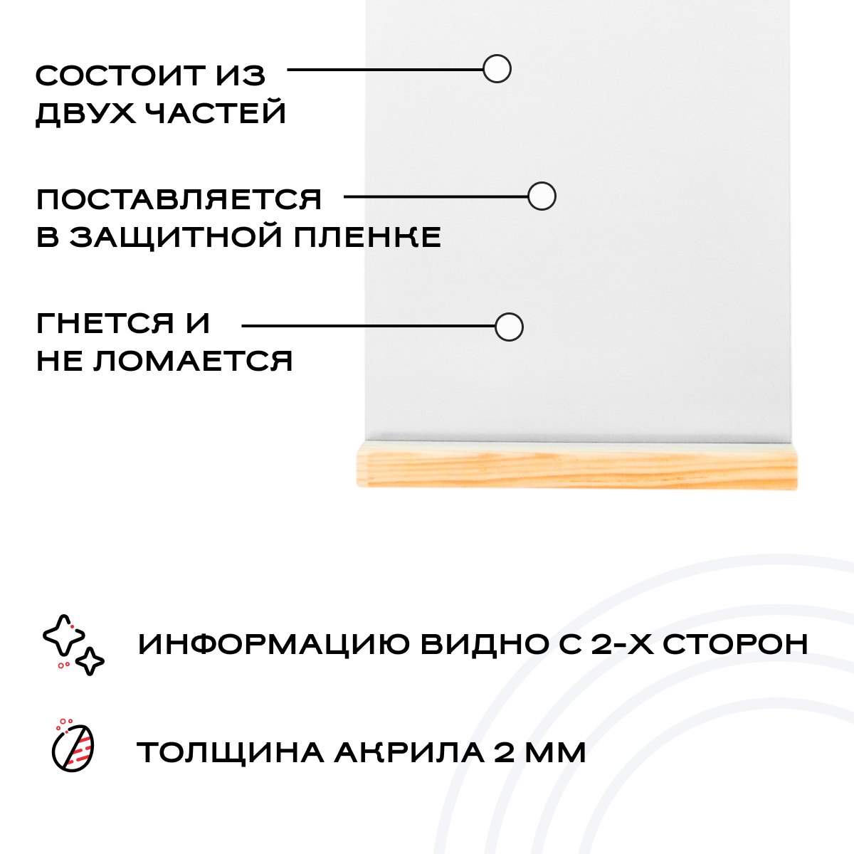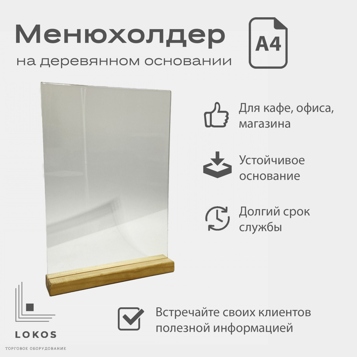 Менюхолдер на деревянном основании А4, акрил можно приобрести в интернет-магазине Lokos с доставкой или самовывозом по Челябинской области или доставкой до ТК с дальнейшей отправкой во все регионы Российской Федерации и СНГ.