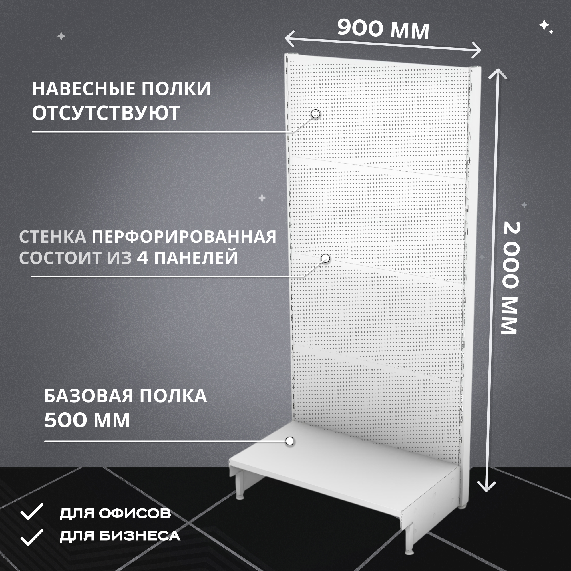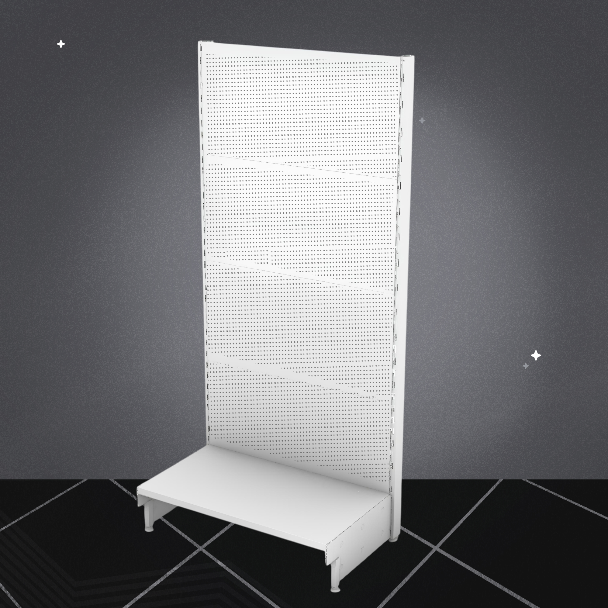 Перфорированный торговый стеллаж — это гибкость и практичность. Перфорация на задней панели позволяет с помощью крючков и полок легко менять конфигурацию под любой товар.