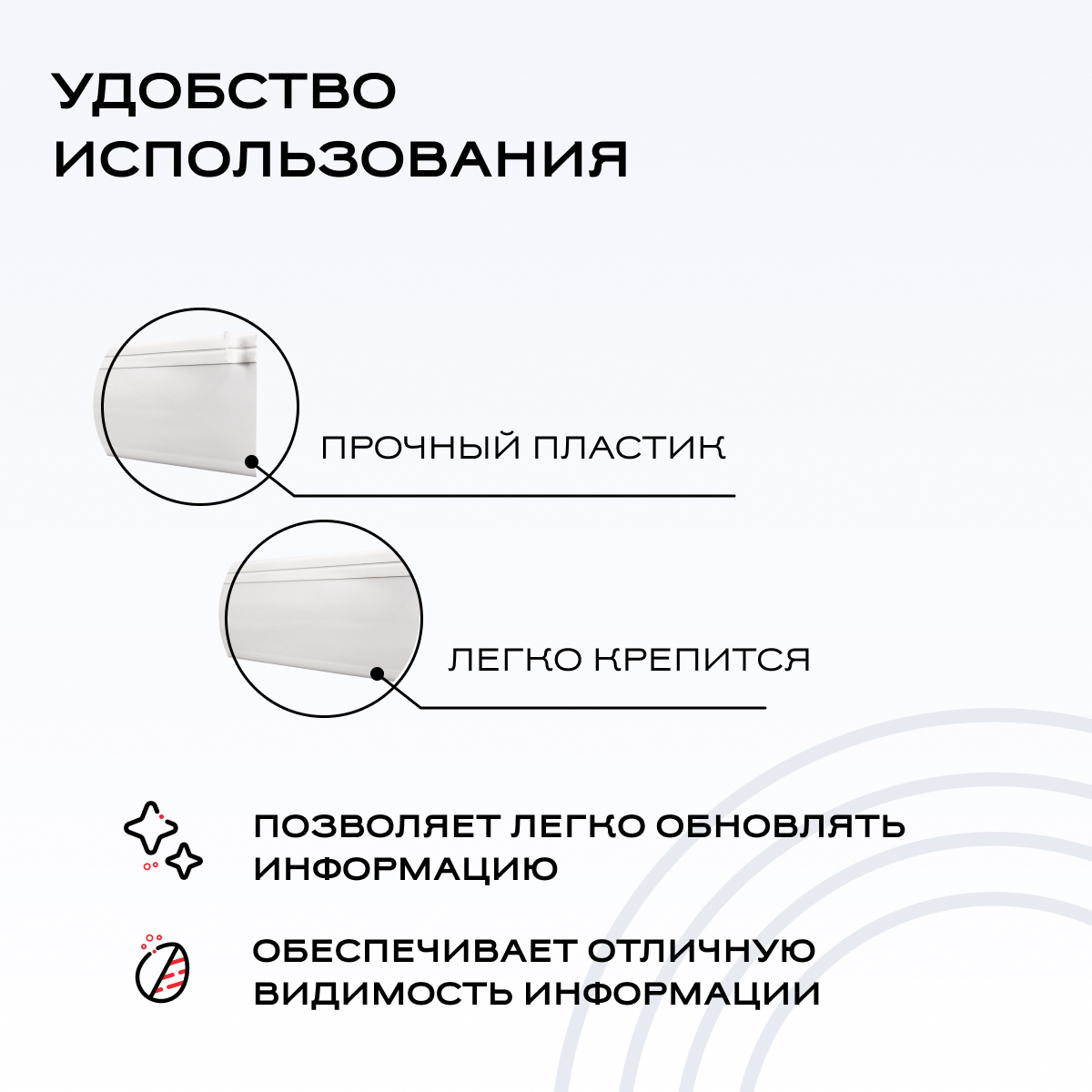 Ценникодержатель полочный самоклеющийся DBR105 длина 1000 мм, высота 105мм, цвет белый можно приобрести в интернет-магазине Lokos с доставкой или самовывозом по Челябинской области или доставкой до ТК с дальнейшей отправкой во все регионы Российской Федерации и СНГ.