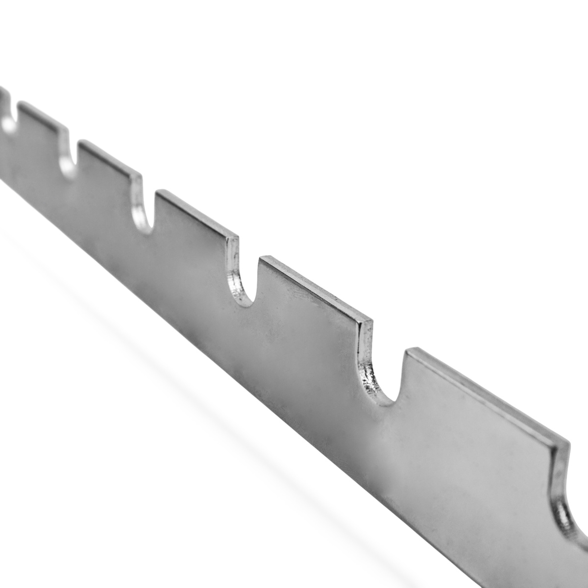 Выполнен из качественного хромированного металла, что обеспечивает долговечность и устойчивость к нагрузкам. Подходит для демонстрации одежды, аксессуаров и других товаров. Благодаря наклонной конструкции и 10 выемкам, товары располагаются ровно и удобно для обзора покупателями.