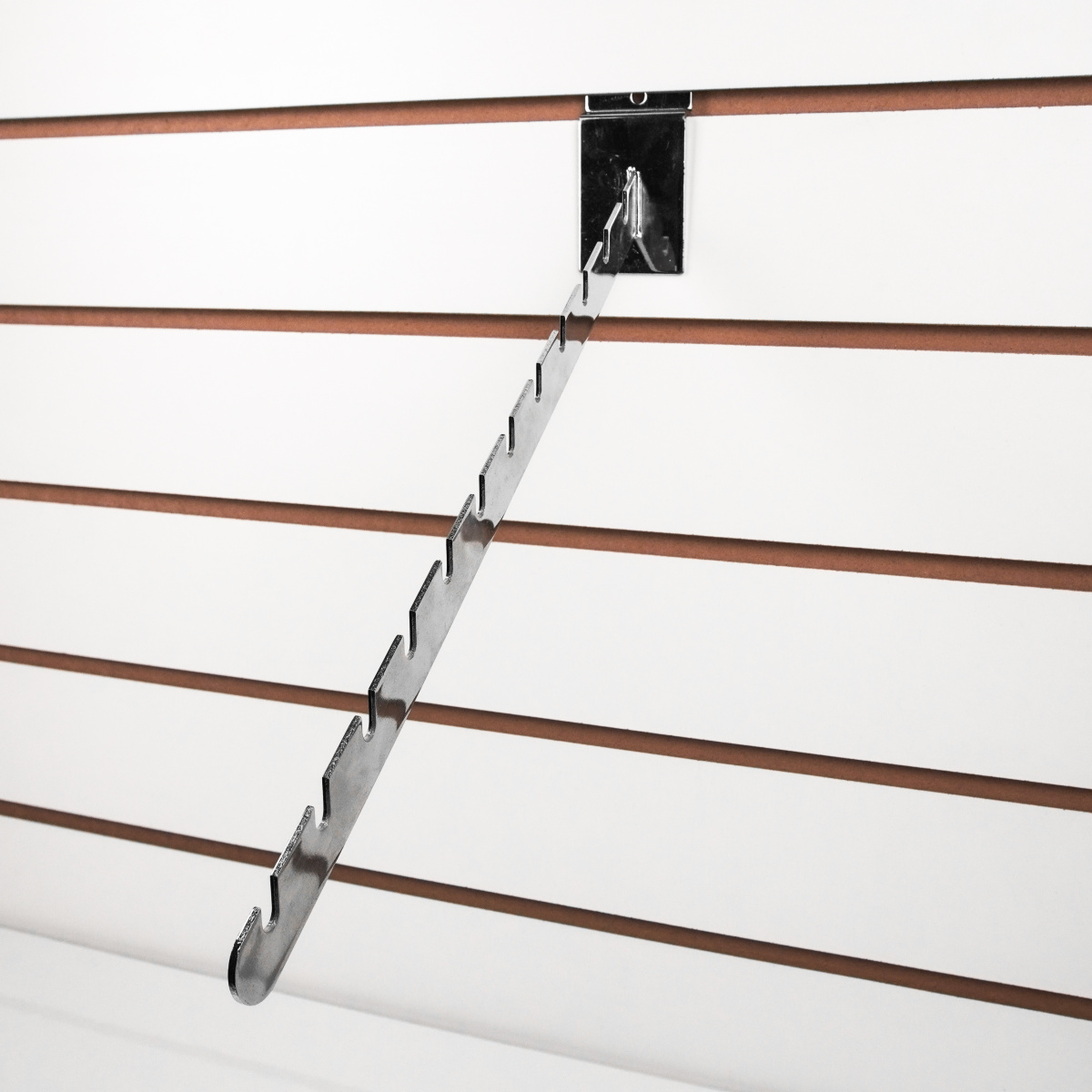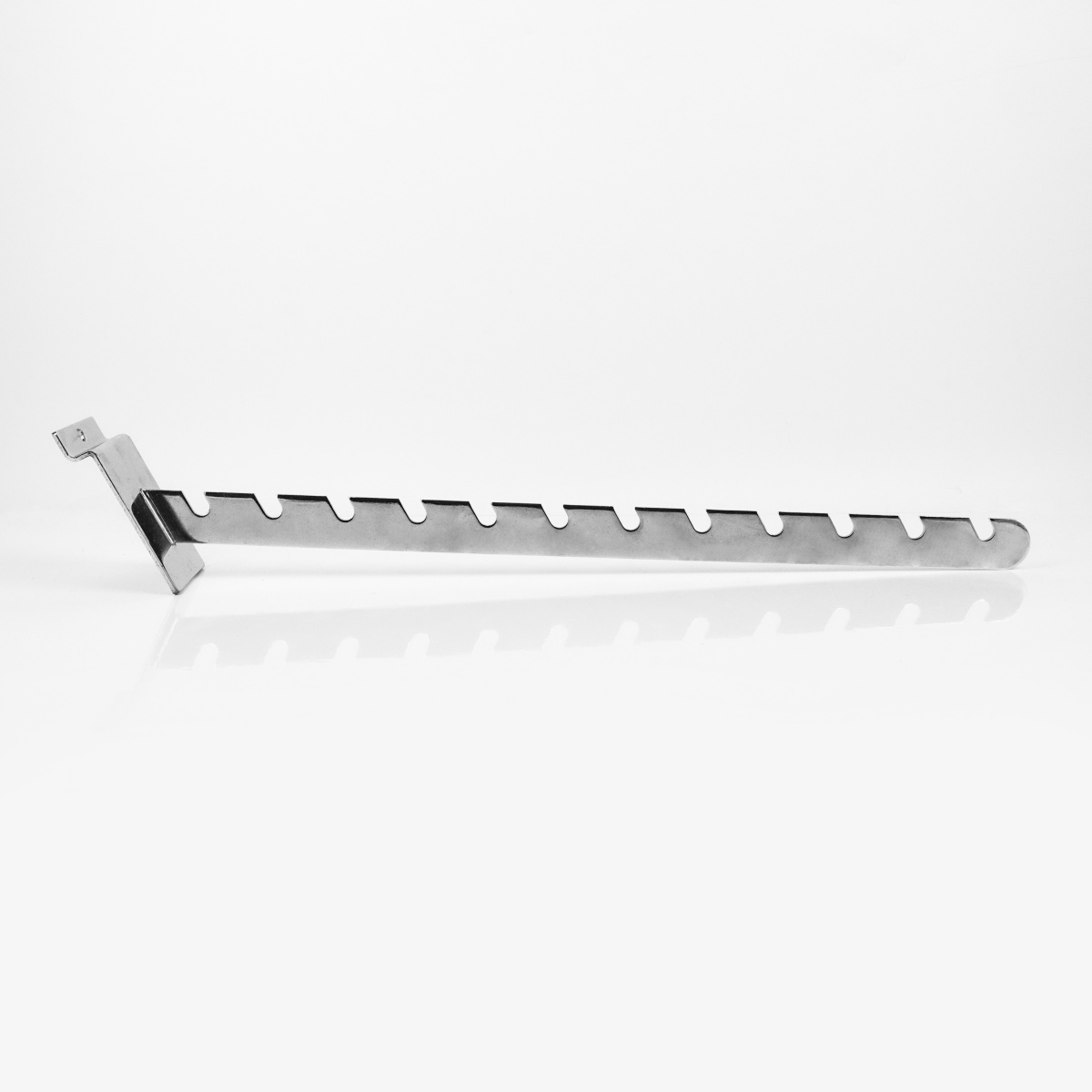 Наклонный держатель с 12 выемками для экономпанели станет незаменимым помощником в организации пространства и привлечении внимания к товару.