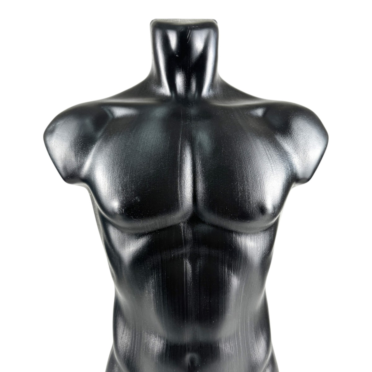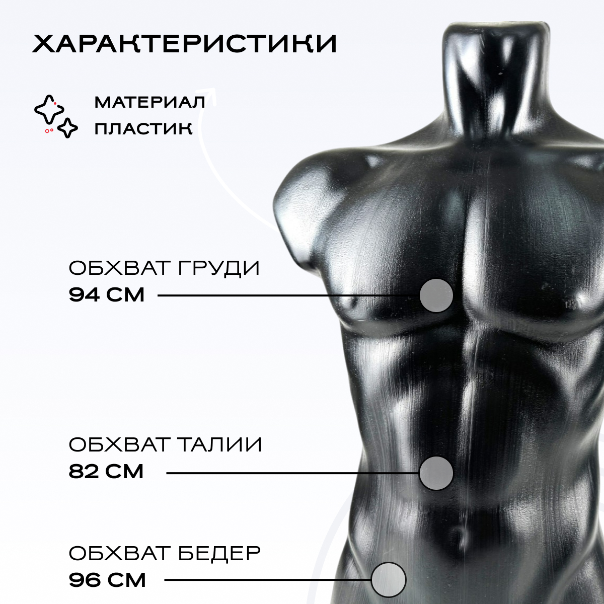 Объемный черный торс Karon/Alisa — это мощный акцент, который демонстрирует крой и посадку одежды на рельефной мужской фигуре. Он фокусирует взгляд покупателя именно на товаре, без лишних деталей.