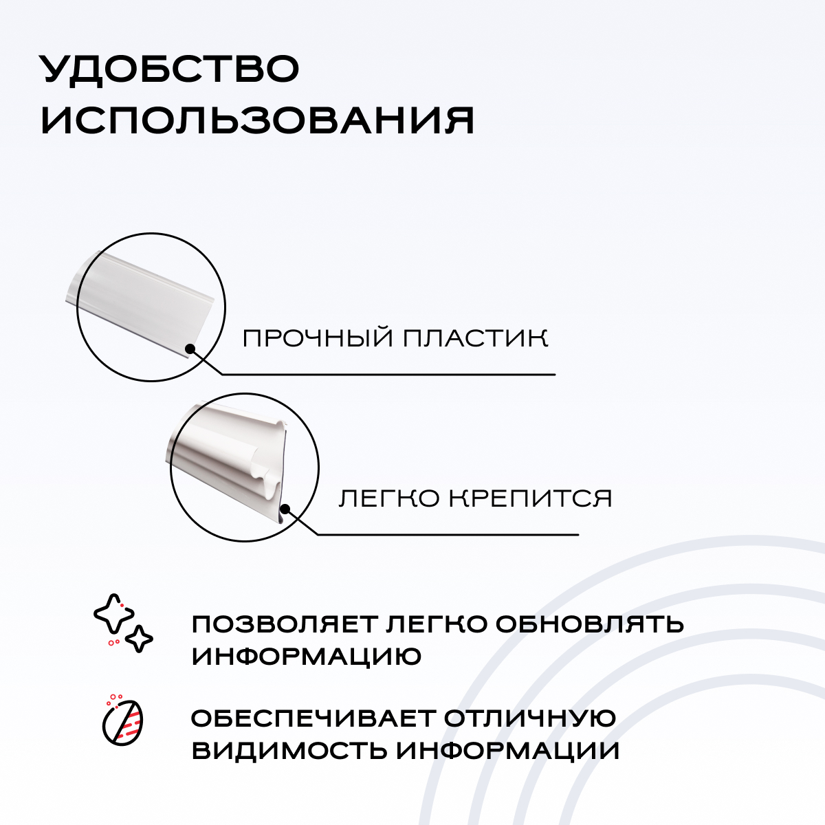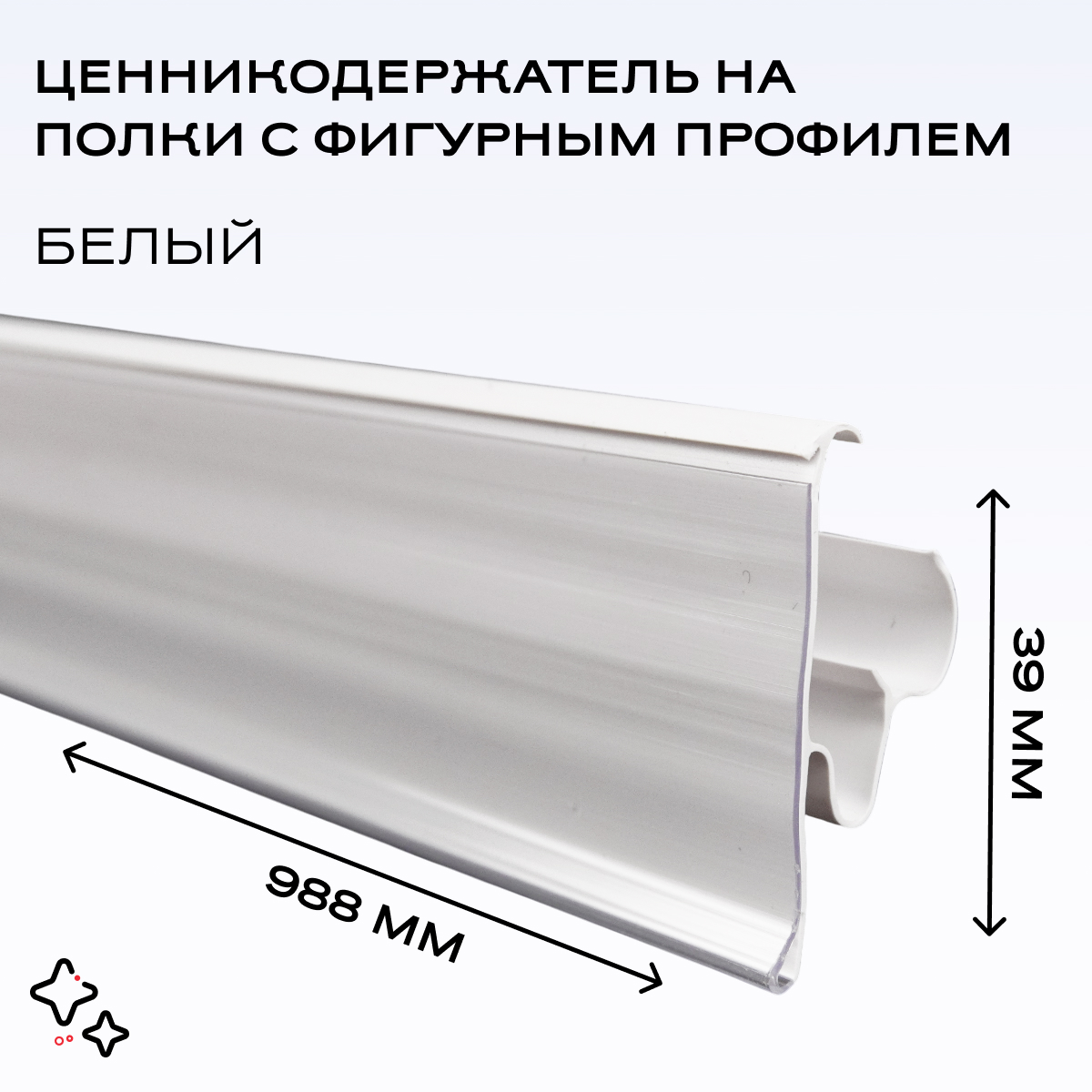Ценникодержатель на полки с фигурным профилем LST39 длина 988мм, цвет белый можно приобрести в интернет-магазине Lokos с доставкой или самовывозом по Челябинской области или доставкой до ТК с дальнейшей отправкой во все регионы Российской Федерации и СНГ.