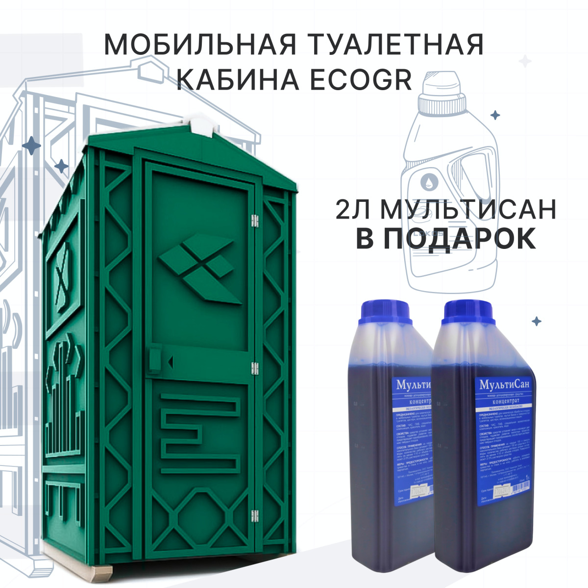 Готовое гигиеническое решение: туалетная кабина + 2 л средства «Мультисан» в подарок!