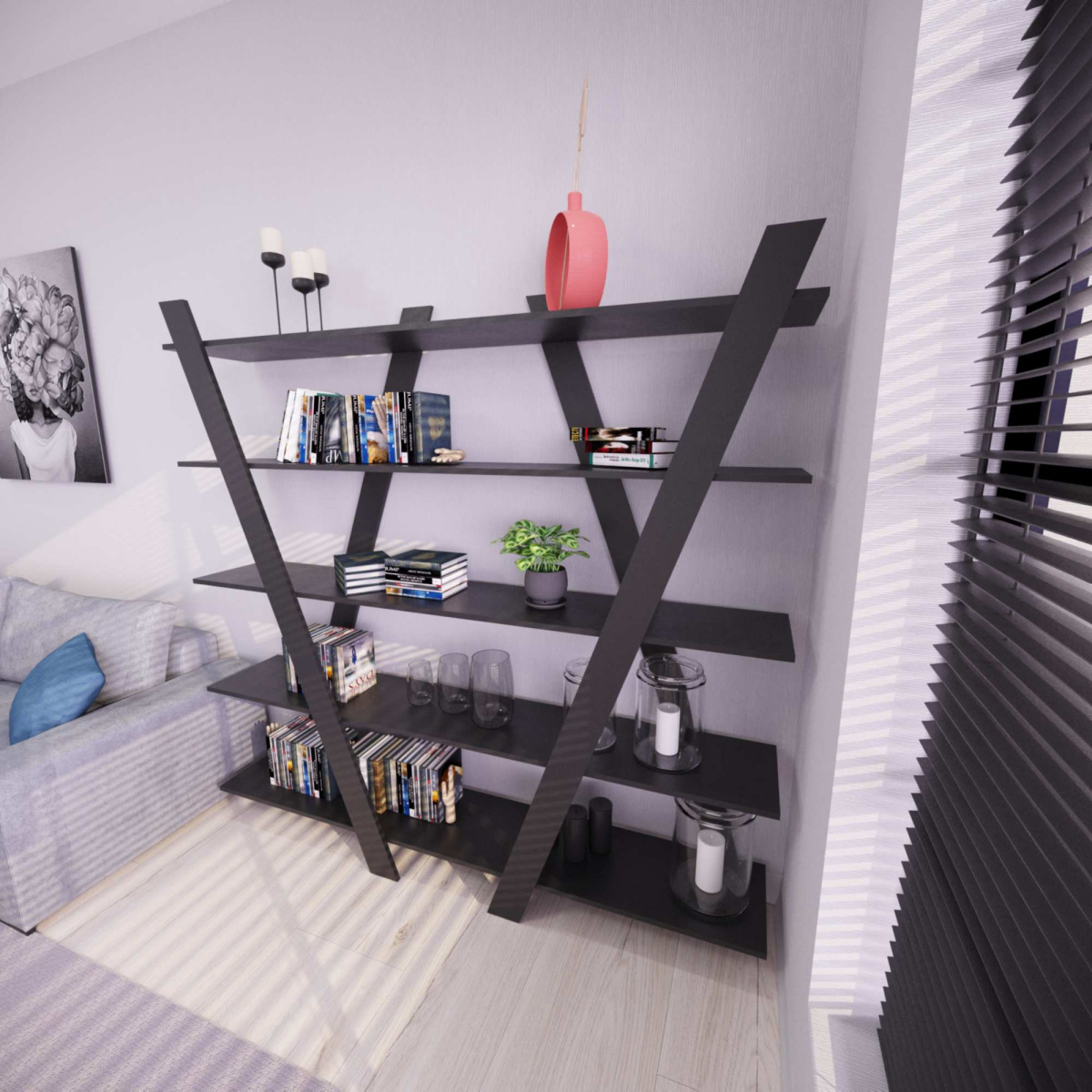 Стеллаж гармонично смотрится в гостиной, спальне, рабочей зоне или прихожей — для книг, декора и повседневных вещей.