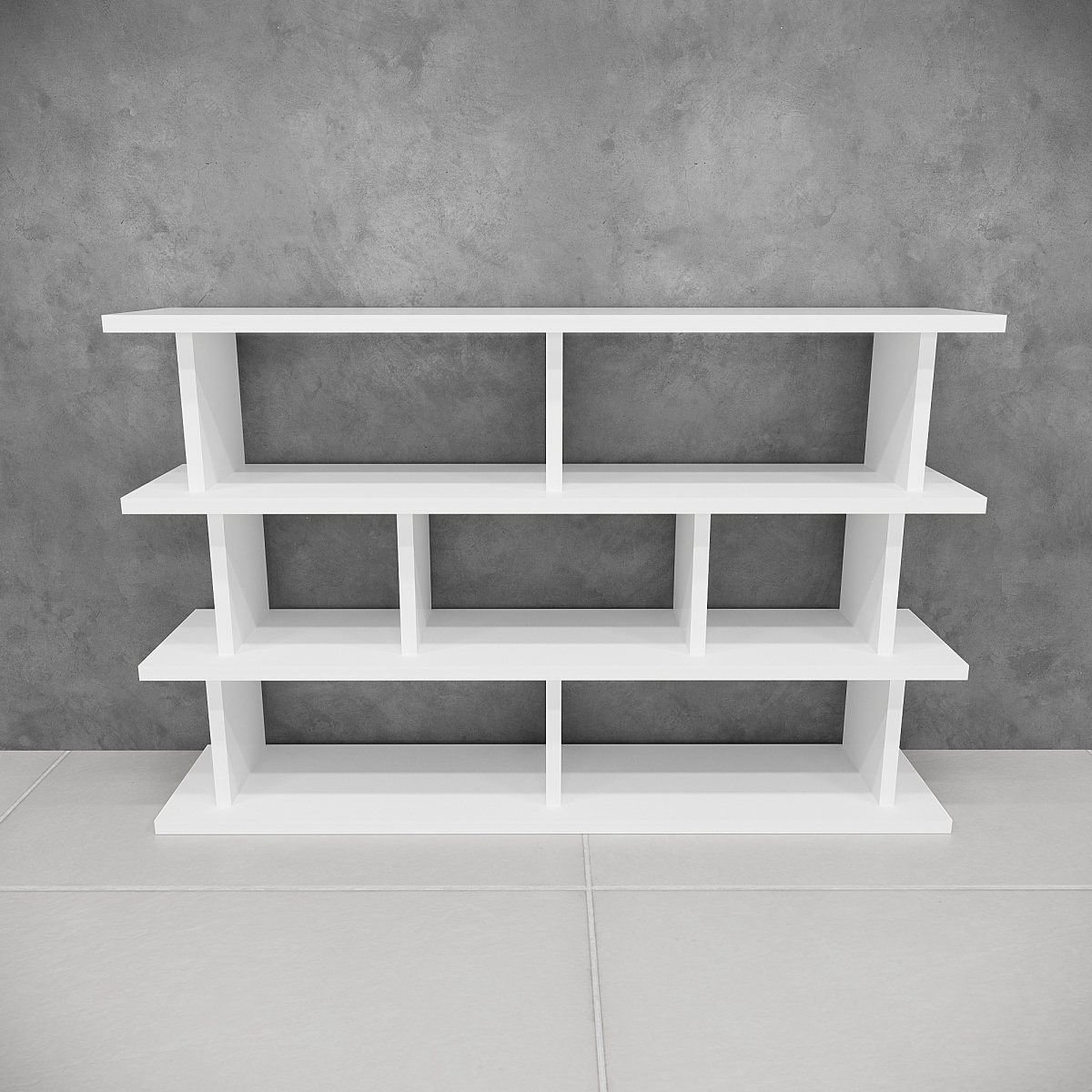 Низкий формат делает модель универсальной: её используют вдоль стены, под телевизором или как лёгкую перегородку для зонирования пространства.
