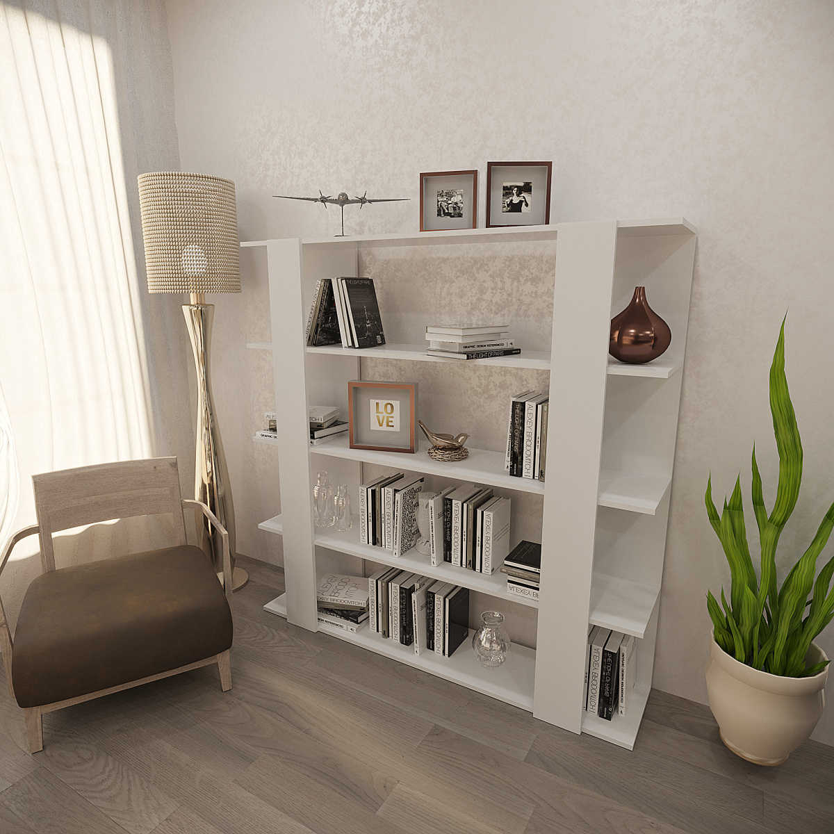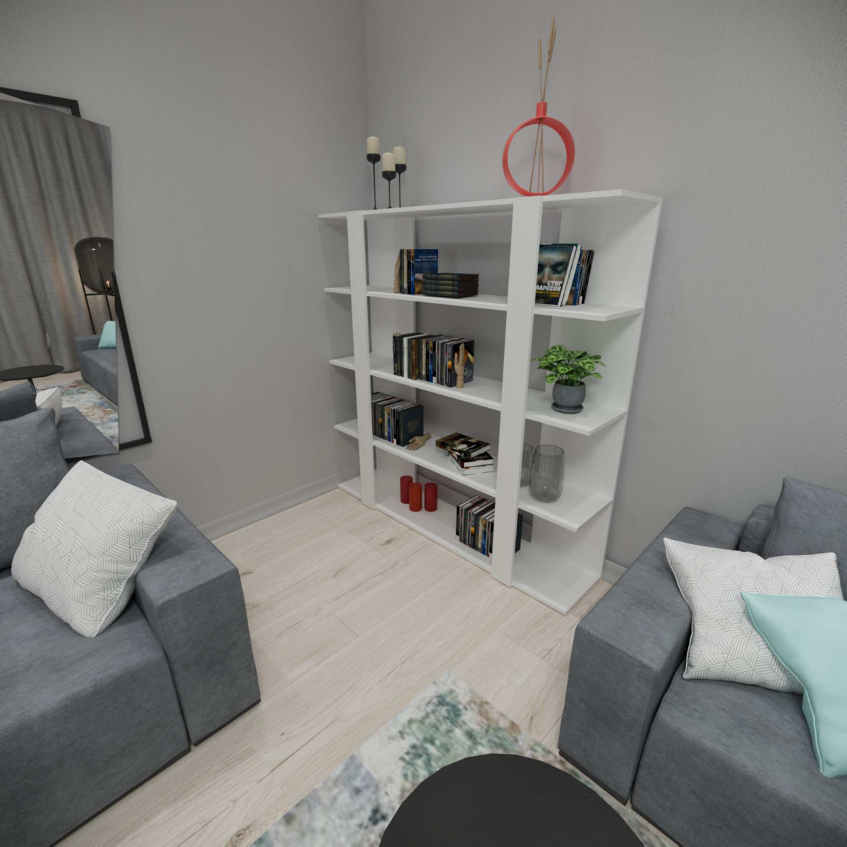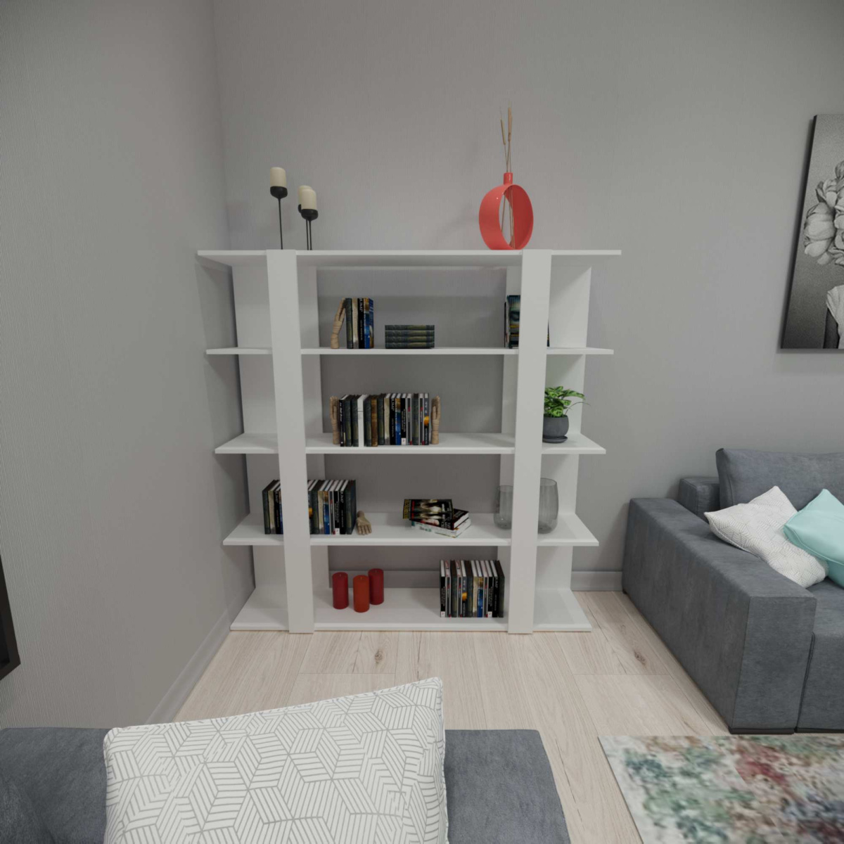 Стеллаж отлично подойдёт для гостиной, спальни или рабочего уголка, помогая организовать хранение и сохранить визуальный порядок.