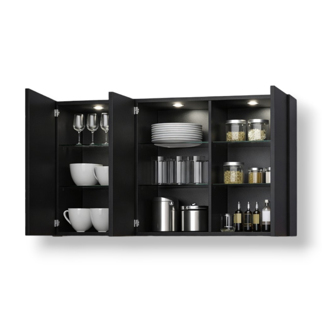 Навесной шкаф для кухни на стену, трёхдверный, подсветка, черный «Absolute Black», 120х70 см можно приобрести в интернет-магазине Lokos с доставкой или самовывозом по Челябинской области или доставкой до ТК с дальнейшей отправкой во все регионы Российской Федерации и СНГ.