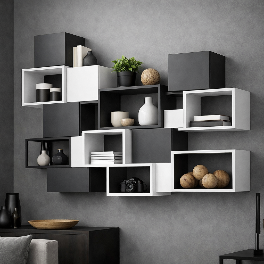 Настенные полки кубики "Mono Grid", модульная система 12 секций можно приобрести в интернет-магазине Lokos с доставкой или самовывозом по Челябинской области или доставкой до ТК с дальнейшей отправкой во все регионы Российской Федерации и СНГ.