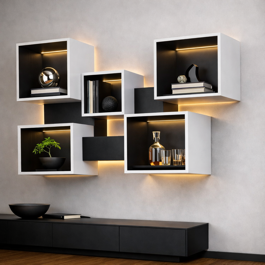 Полки-кубы настенные с подсветкой "Aura Light", 5 секций можно приобрести в интернет-магазине Lokos с доставкой или самовывозом по Челябинской области или доставкой до ТК с дальнейшей отправкой во все регионы Российской Федерации и СНГ.