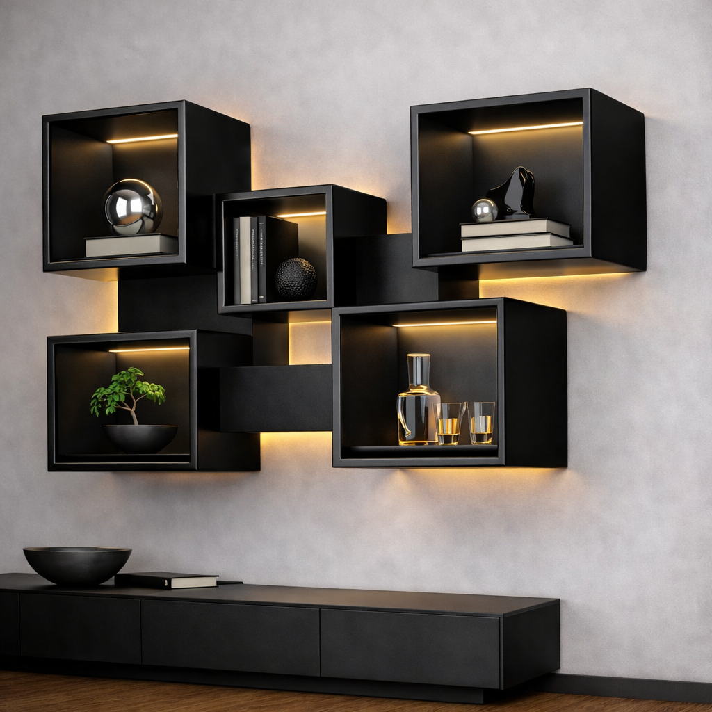 Полка-куб настенная с подсветкой "Shadow Line", 5 секций можно приобрести в интернет-магазине Lokos с доставкой или самовывозом по Челябинской области или доставкой до ТК с дальнейшей отправкой во все регионы Российской Федерации и СНГ.