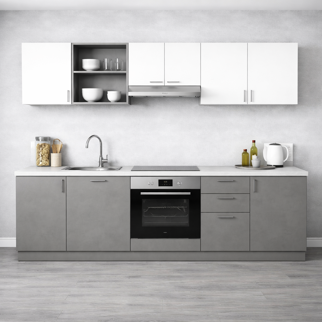Кухонный гарнитур трёхметровый цвет серый + белый «Linea», 240см можно приобрести в интернет-магазине Lokos с доставкой или самовывозом по Челябинской области или доставкой до ТК с дальнейшей отправкой во все регионы Российской Федерации и СНГ.
