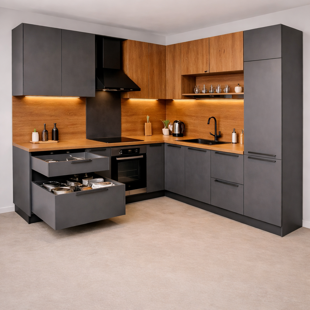 L-образный кухонный гарнитур «Urban Line», серый, 250х220см можно приобрести в интернет-магазине Lokos с доставкой или самовывозом по Челябинской области или доставкой до ТК с дальнейшей отправкой во все регионы Российской Федерации и СНГ.