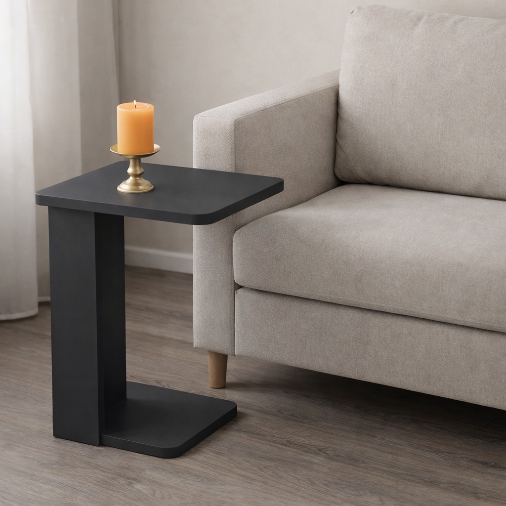 Графичный акцент с безопасными краями. Приставной столик «C-Frame Soft» в глубоком чёрном матовом исполнении — выразительное решение для современного интерьера, дополненное важным функциональным улучшением: закруглёнными внешними углами. Скруглённые края столешницы и основания смягчают строгую геометрию чёрного цвета, делая столик более уютным и значительно безопаснее для повседневного использования.