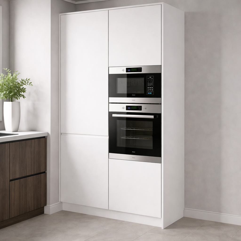 Белый пенал на кухню для техники вертикальный блок СВЧ+духовка «Groove» 210x60см можно приобрести в интернет-магазине Lokos с доставкой или самовывозом по Челябинской области или доставкой до ТК с дальнейшей отправкой во все регионы Российской Федерации и СНГ.