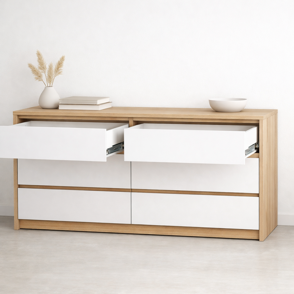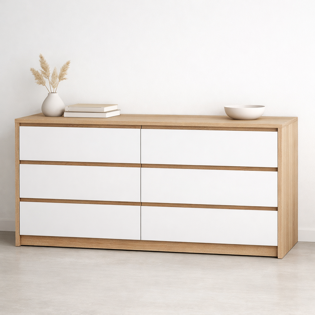 Большой комод Clean Line дуб+белый 140×80см можно приобрести в интернет-магазине Lokos с доставкой или самовывозом по Челябинской области или доставкой до ТК с дальнейшей отправкой во все регионы Российской Федерации и СНГ.