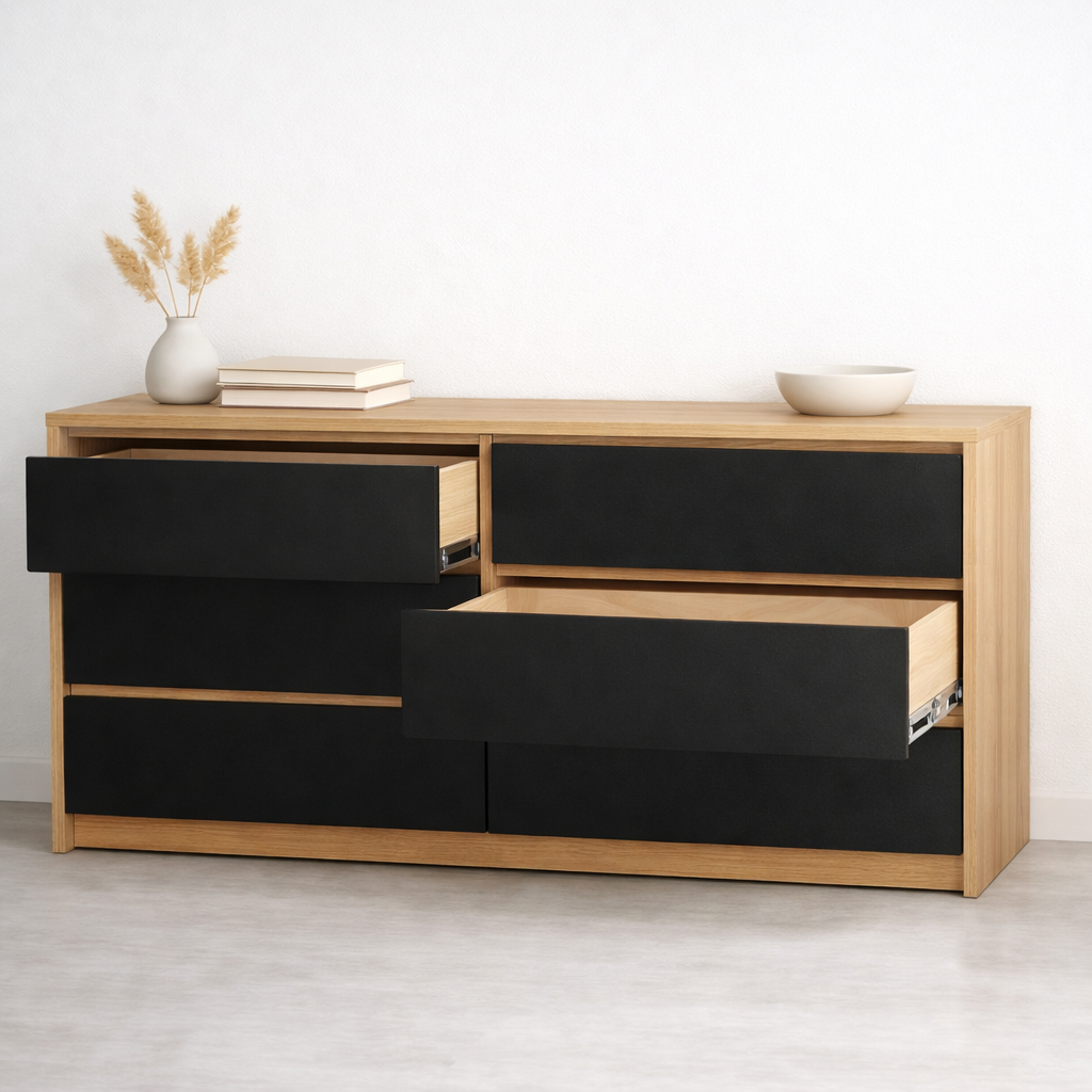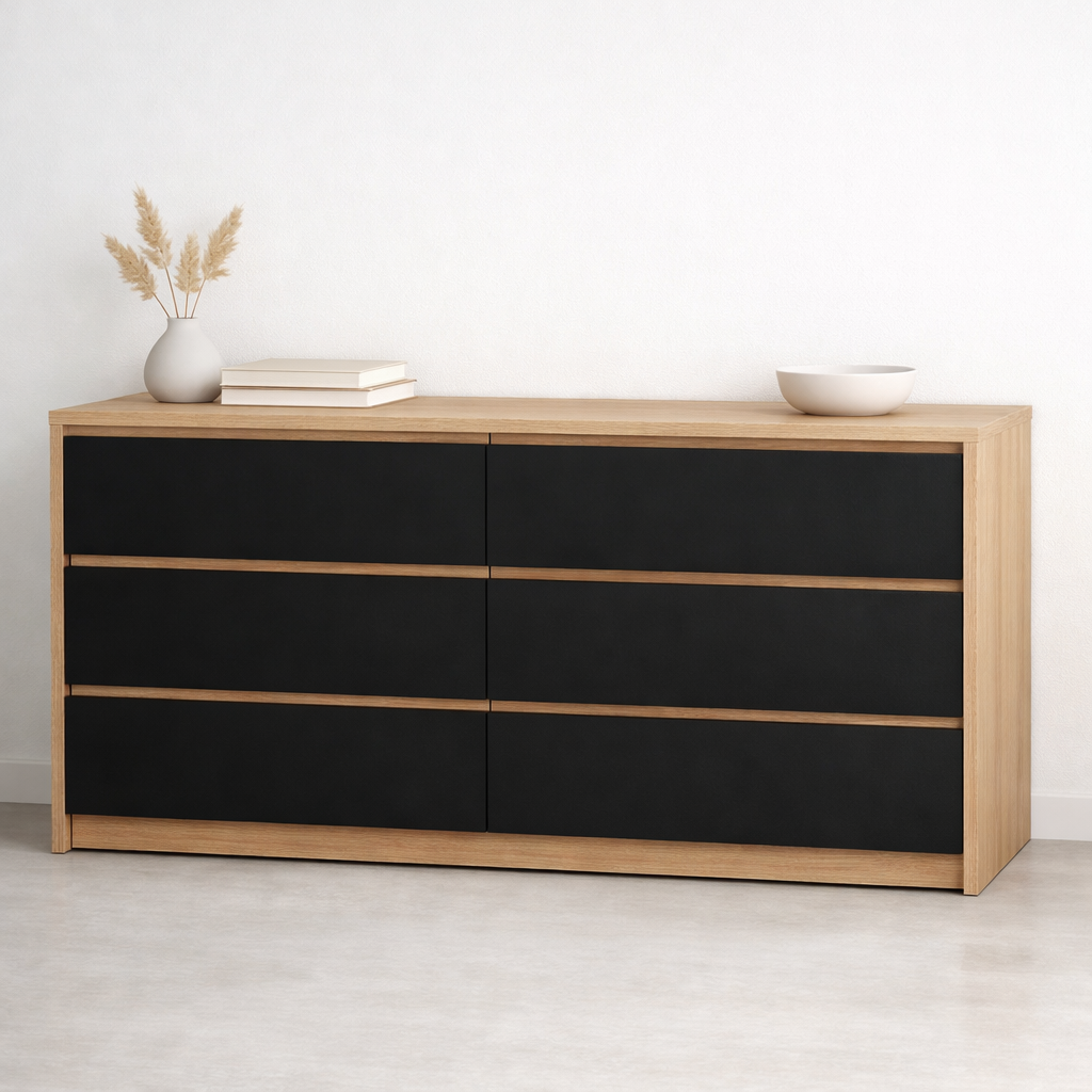 Комод в гостиную Clean Line дуб+чёрный 140×80см можно приобрести в интернет-магазине Lokos с доставкой или самовывозом по Челябинской области или доставкой до ТК с дальнейшей отправкой во все регионы Российской Федерации и СНГ.