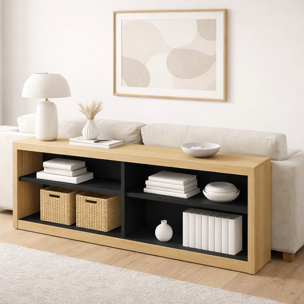Узкий стол за диван черный-дуб сонома "Module", 140×70 см можно приобрести в интернет-магазине Lokos с доставкой или самовывозом по Челябинской области или доставкой до ТК с дальнейшей отправкой во все регионы Российской Федерации и СНГ.