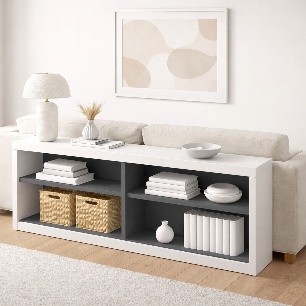 Консоль для гостиной за диваном серо-белая "Contrast", 140×70 см можно приобрести в интернет-магазине Lokos с доставкой или самовывозом по Челябинской области или доставкой до ТК с дальнейшей отправкой во все регионы Российской Федерации и СНГ.