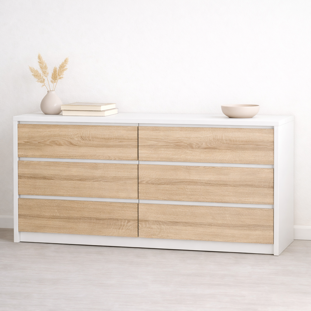 Компактный комод для гостиной Clean Line белый+дуб 140×80см можно приобрести в интернет-магазине Lokos с доставкой или самовывозом по Челябинской области или доставкой до ТК с дальнейшей отправкой во все регионы Российской Федерации и СНГ.