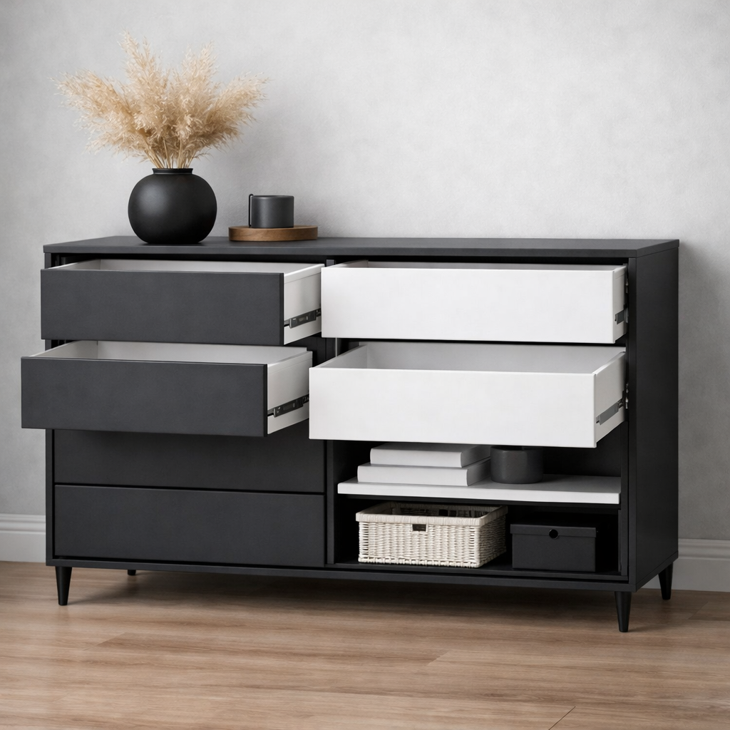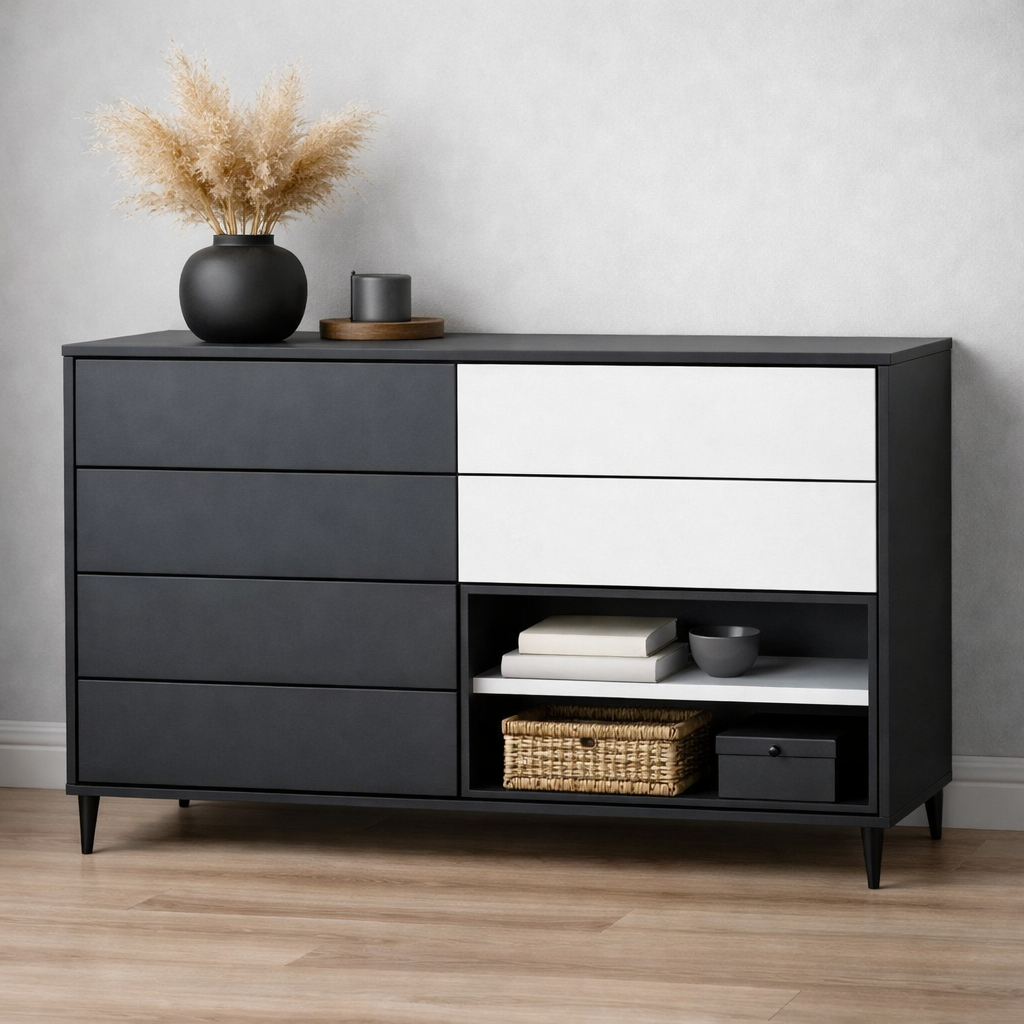 Комод с ящиками Nord графит+белый 140×80см можно приобрести в интернет-магазине Lokos с доставкой или самовывозом по Челябинской области или доставкой до ТК с дальнейшей отправкой во все регионы Российской Федерации и СНГ.