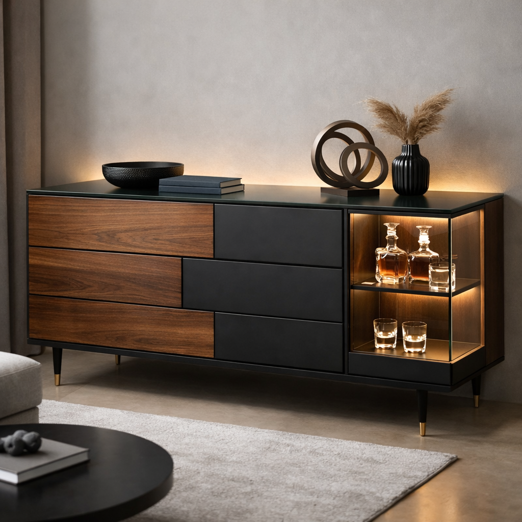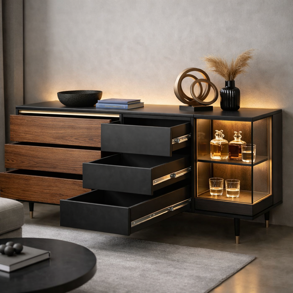Комод-витрина 6 ящика Gallery графит+орех 190×72см можно приобрести в интернет-магазине Lokos с доставкой или самовывозом по Челябинской области или доставкой до ТК с дальнейшей отправкой во все регионы Российской Федерации и СНГ.