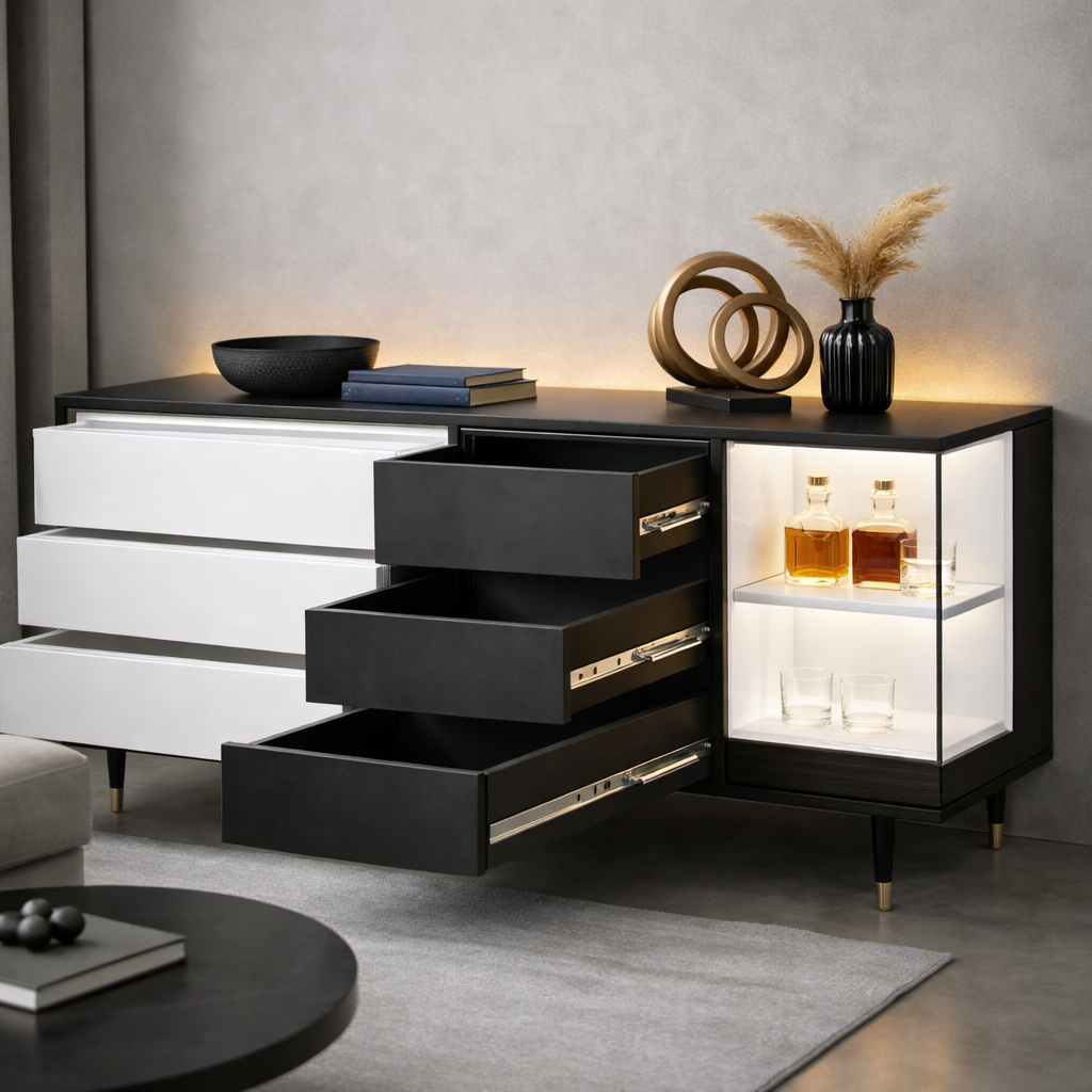 Витринный комод Gallery чёрный+белый 190×72см можно приобрести в интернет-магазине Lokos с доставкой или самовывозом по Челябинской области или доставкой до ТК с дальнейшей отправкой во все регионы Российской Федерации и СНГ.